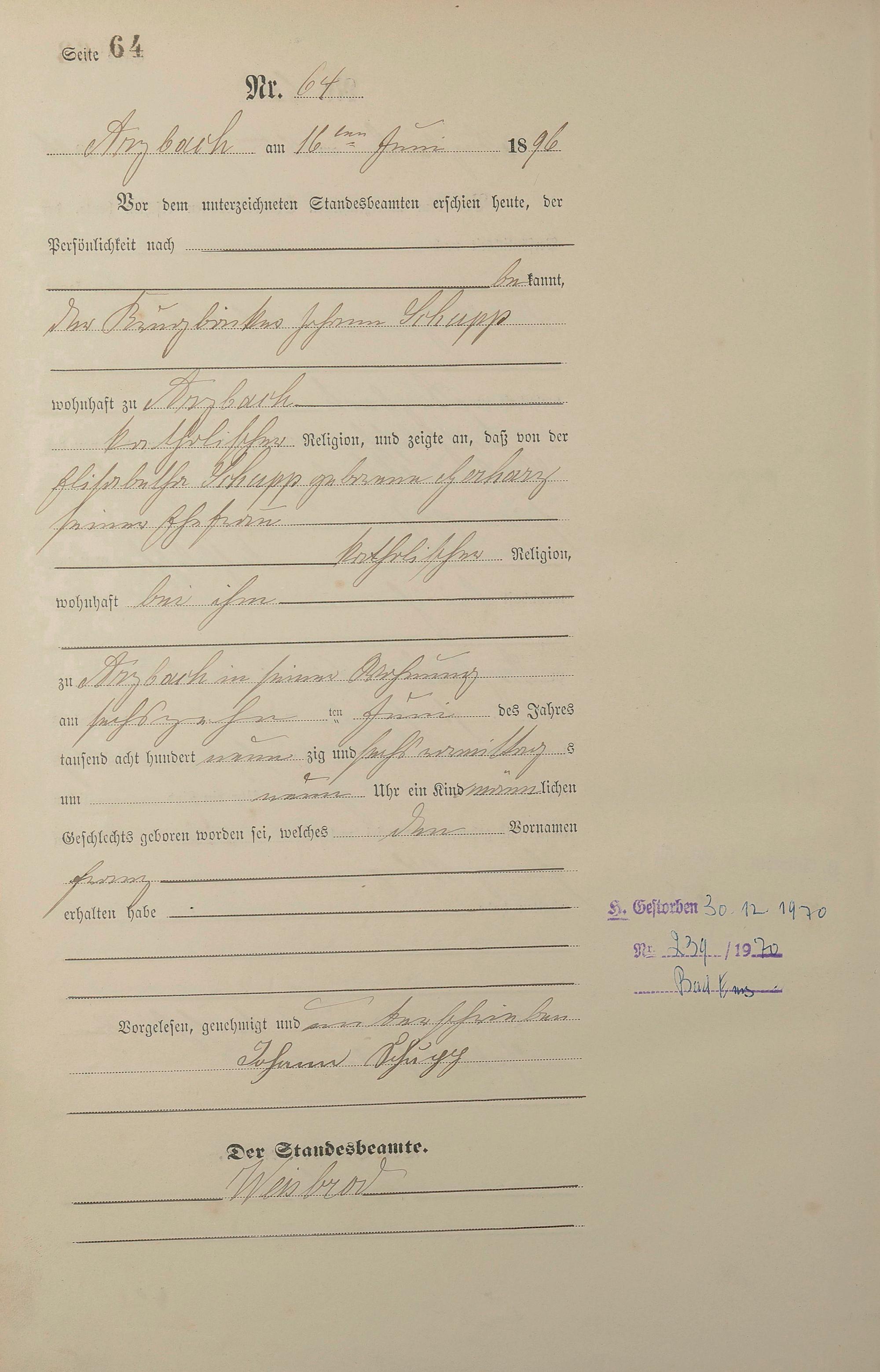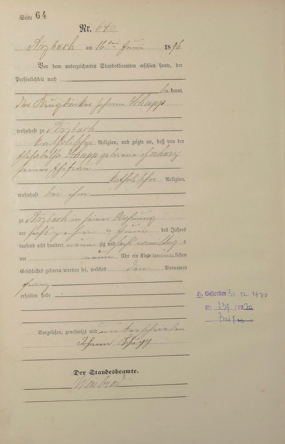 Geburtsregister 1896