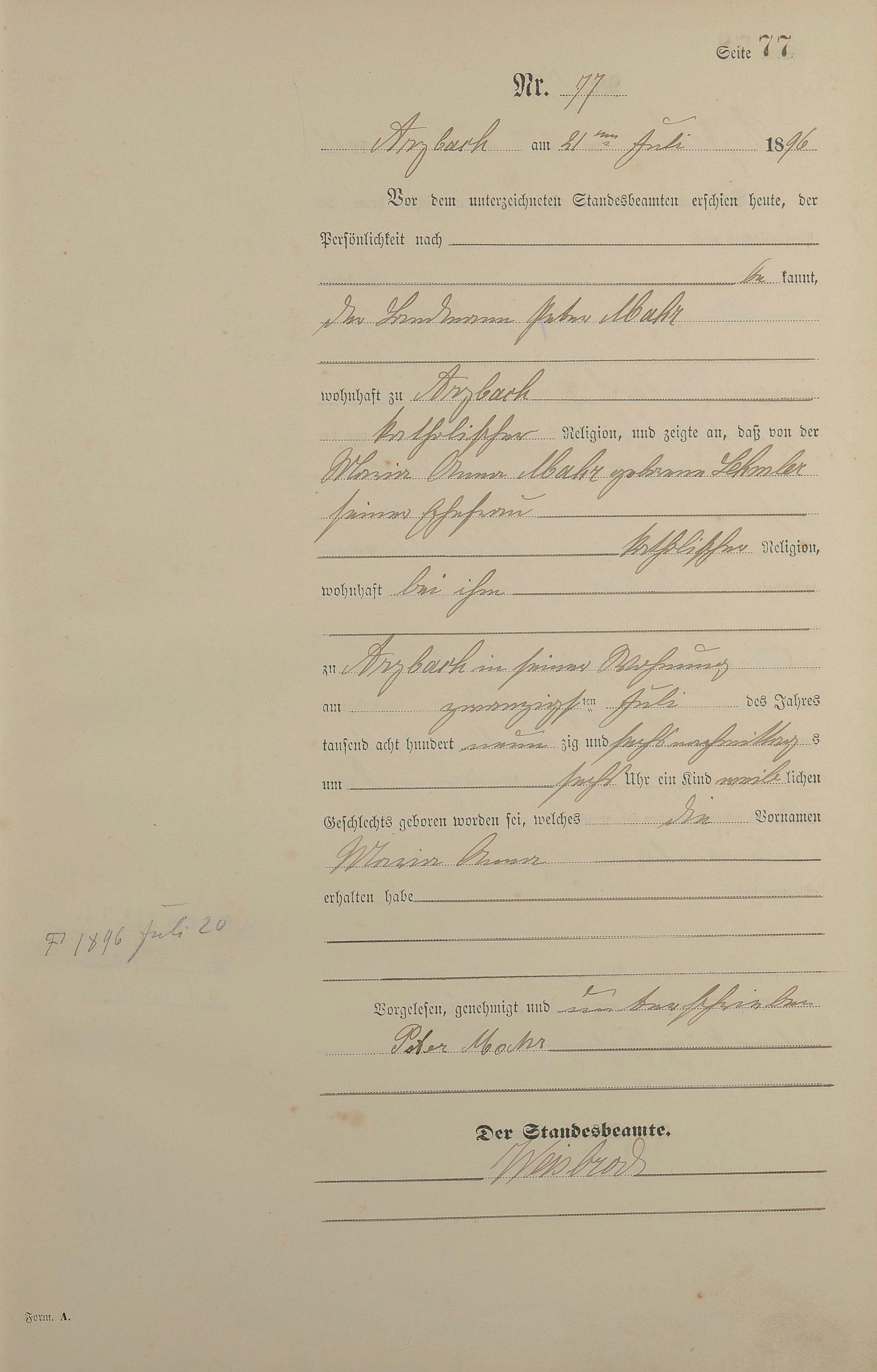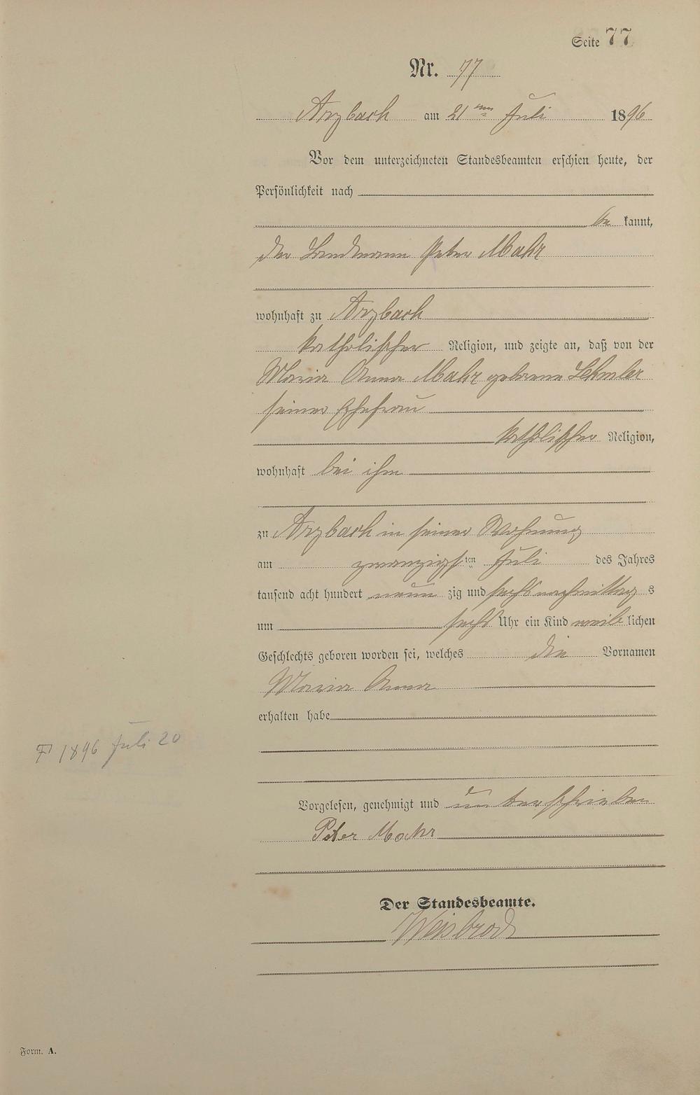 Geburtsregister 1896