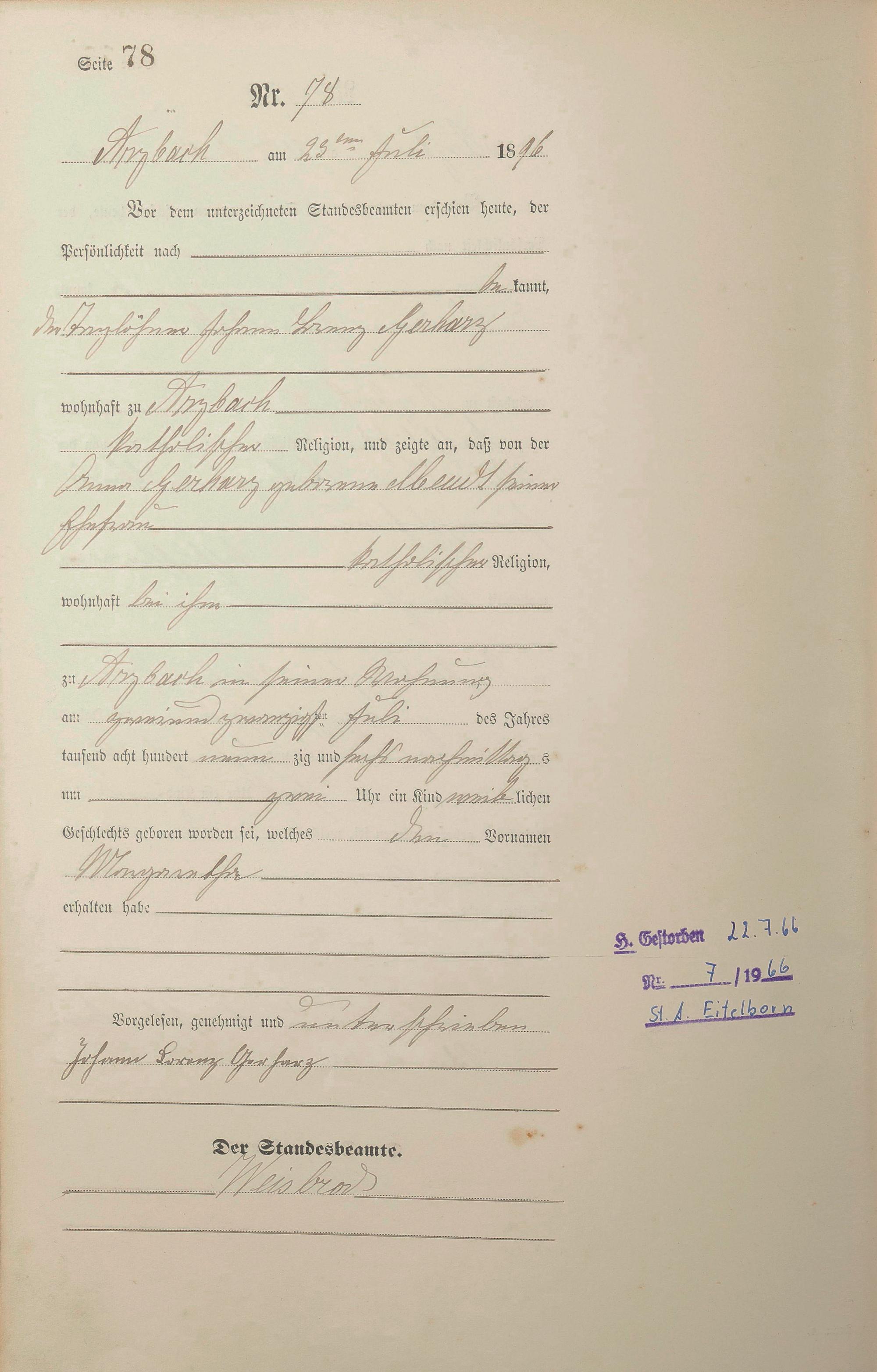 Geburtsregister 1896