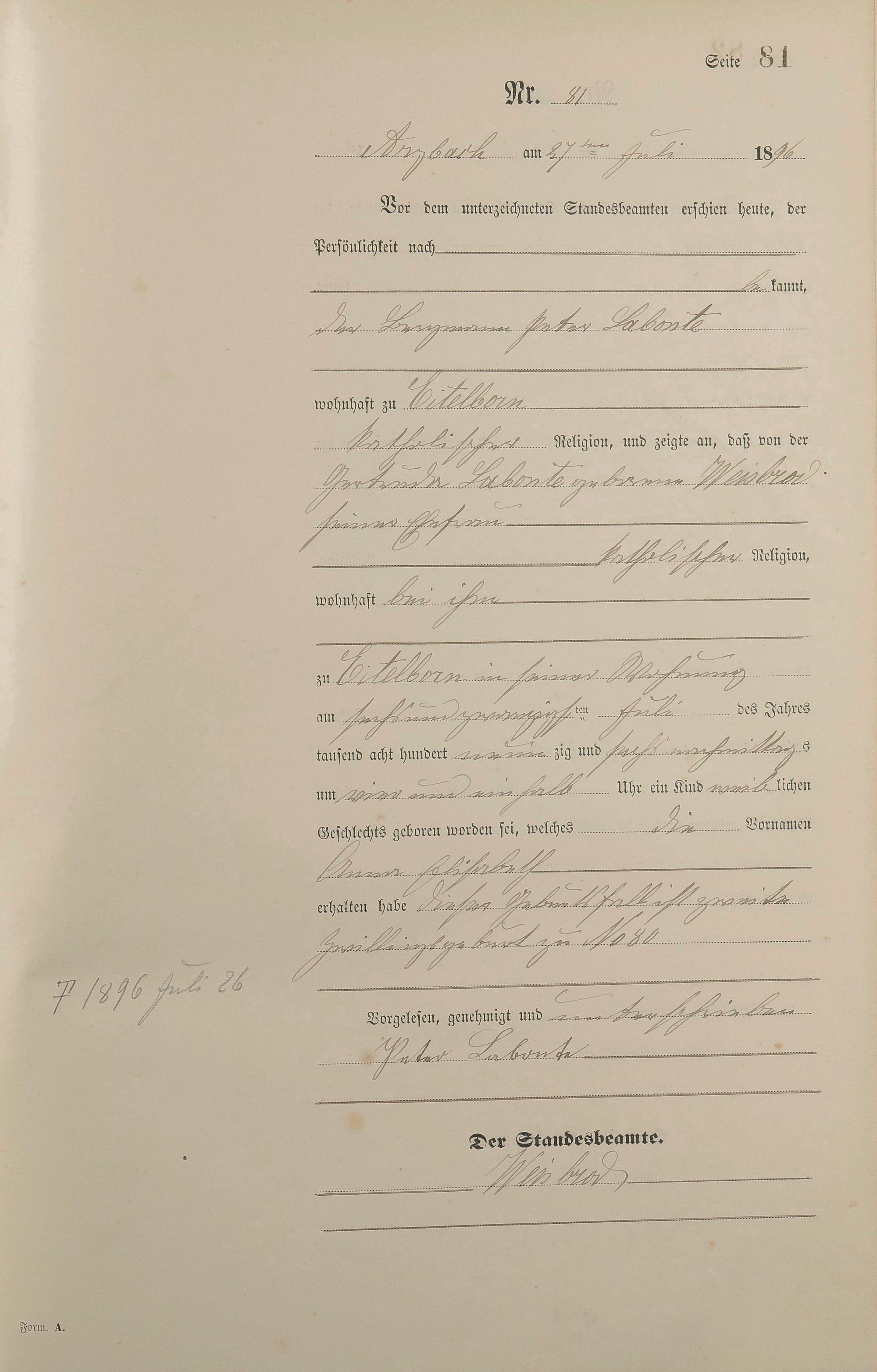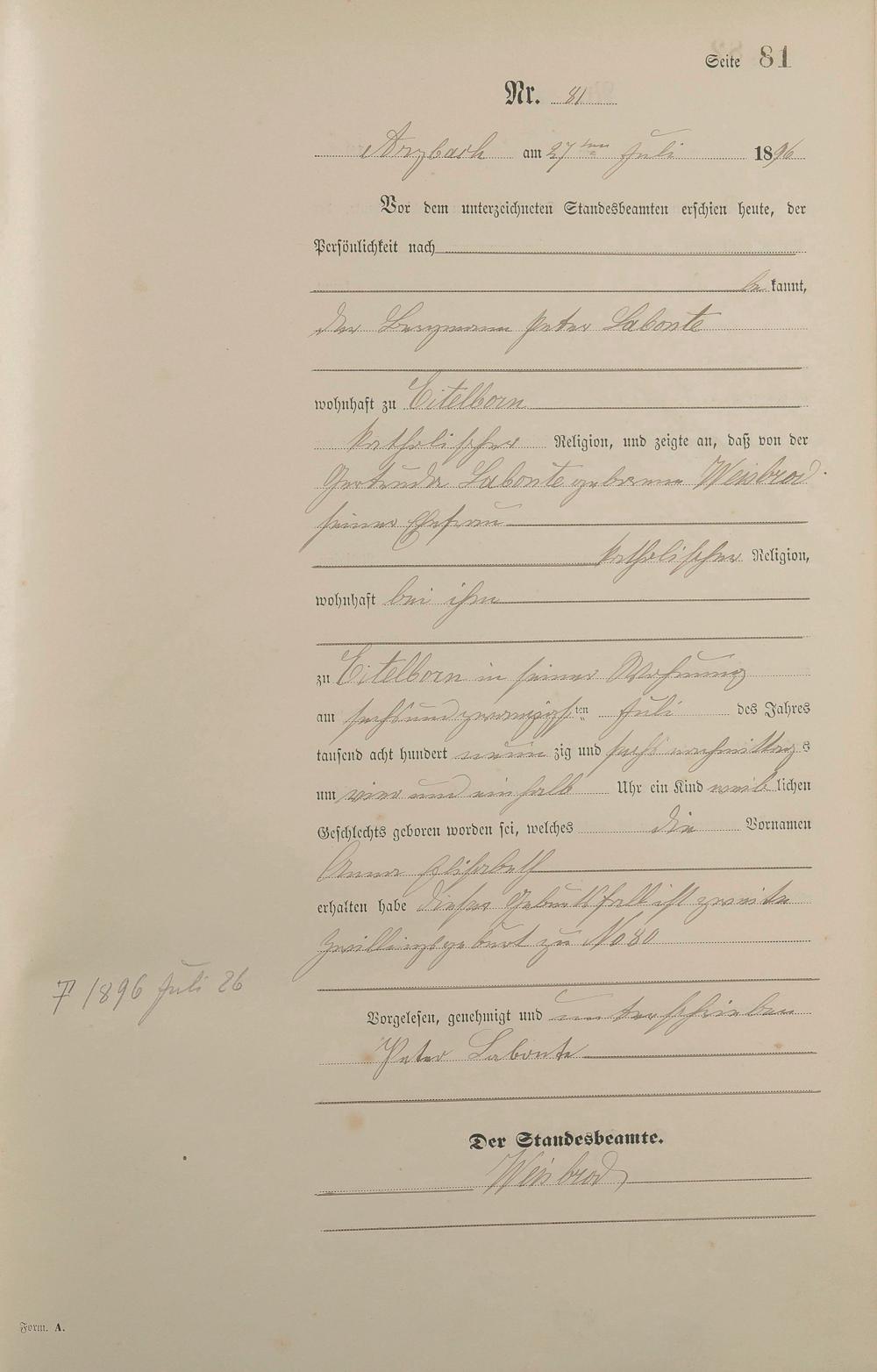 Geburtsregister 1896