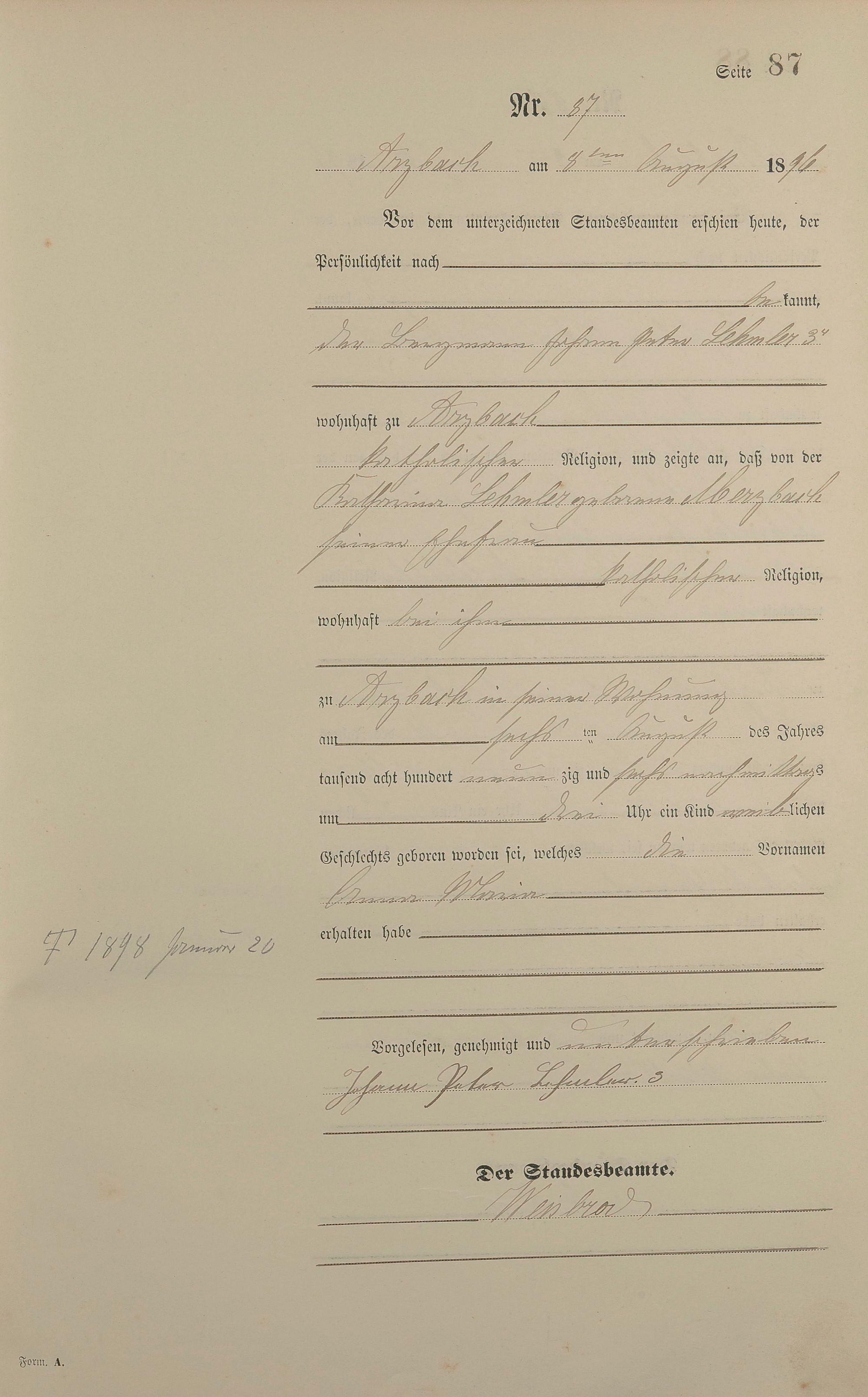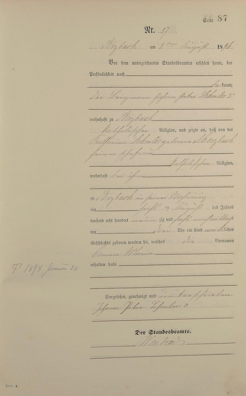 Geburtsregister 1896