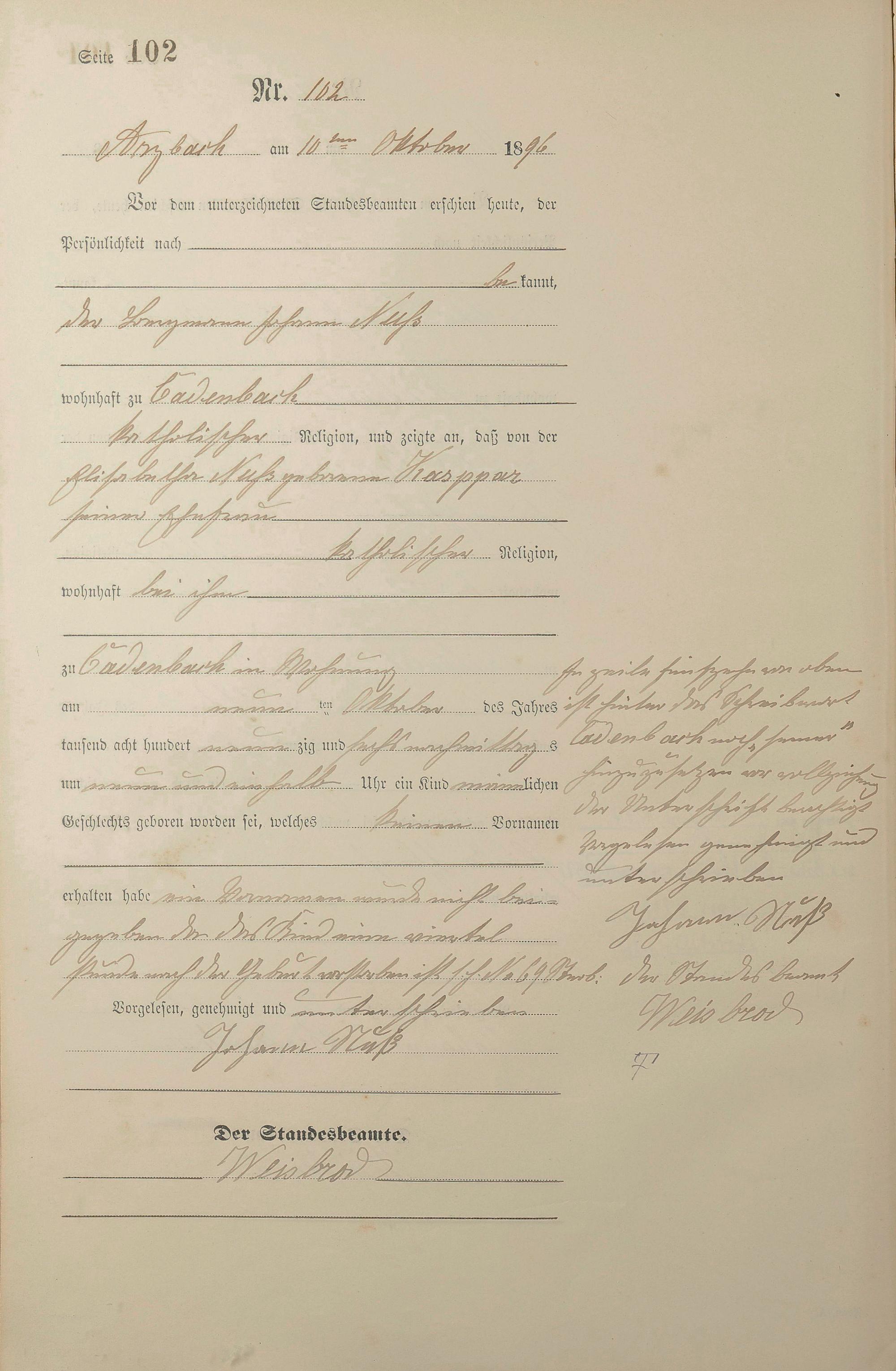 Geburtsregister 1896