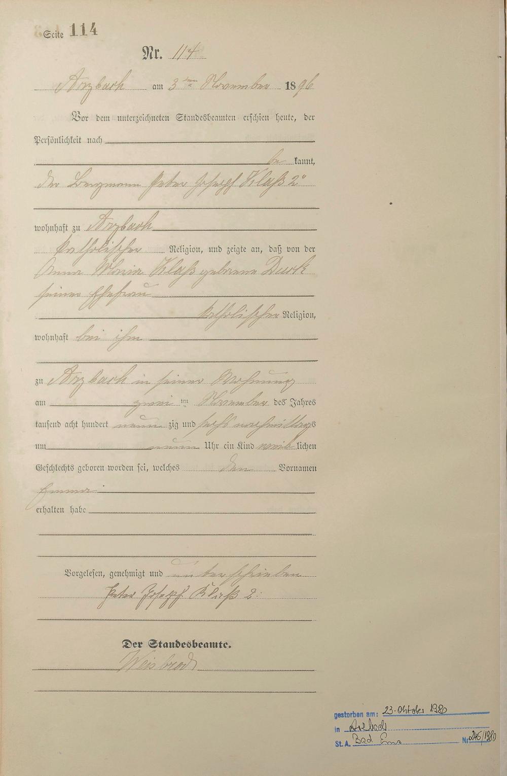 Geburtsregister 1896