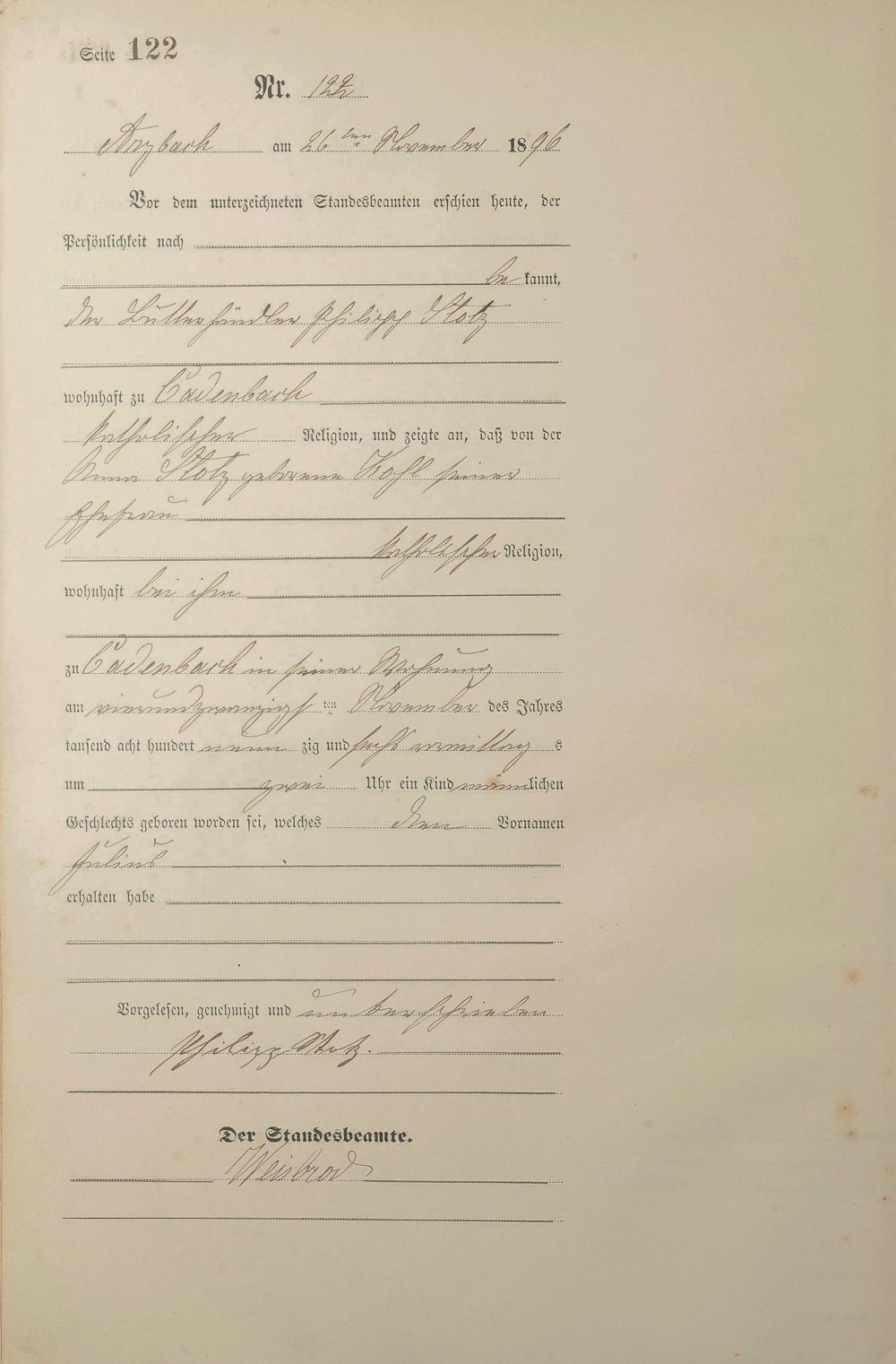 Geburtsregister 1896