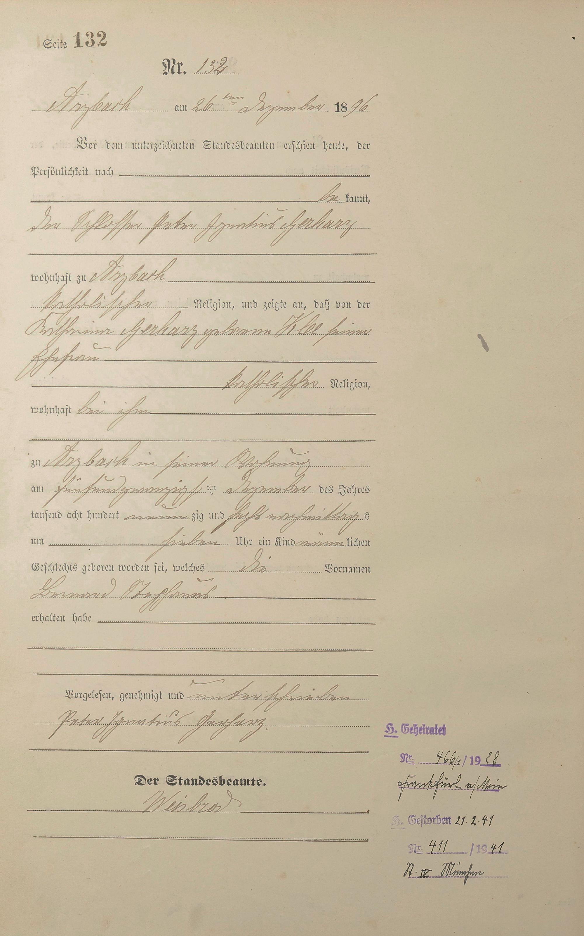 Geburtsregister 1896