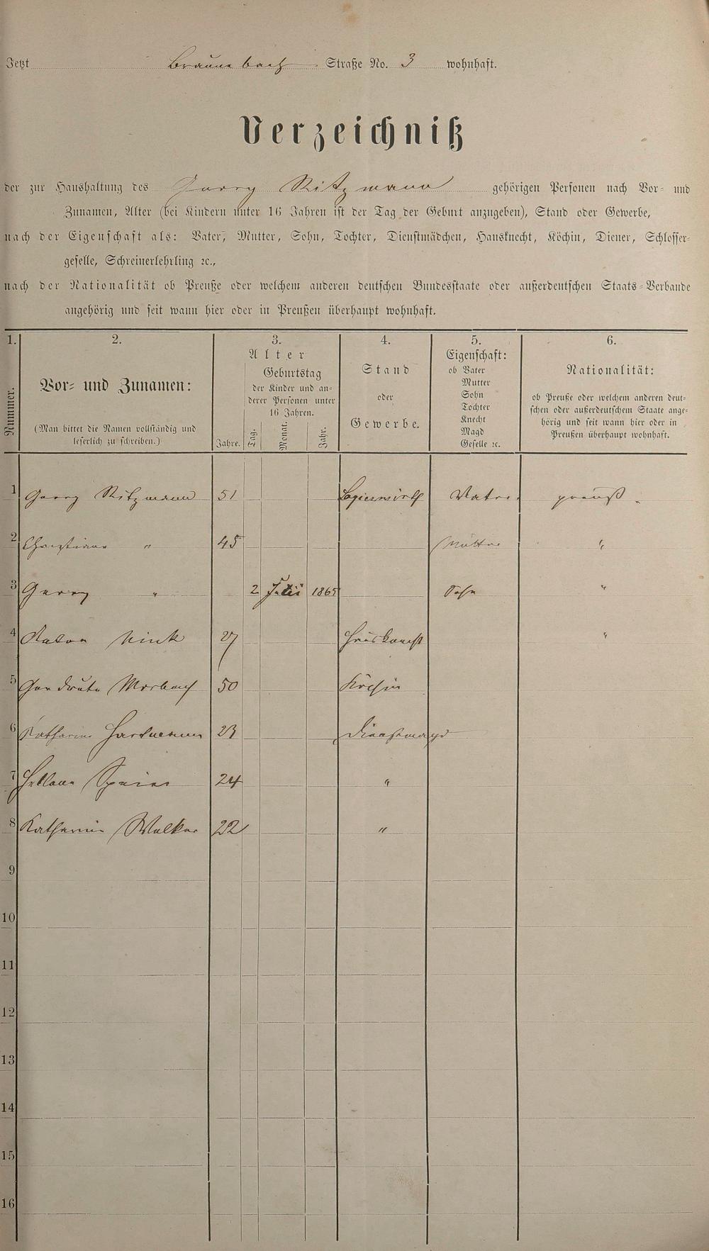 Personenstandsaufnahme zur Klassensteuerrolle für 1873