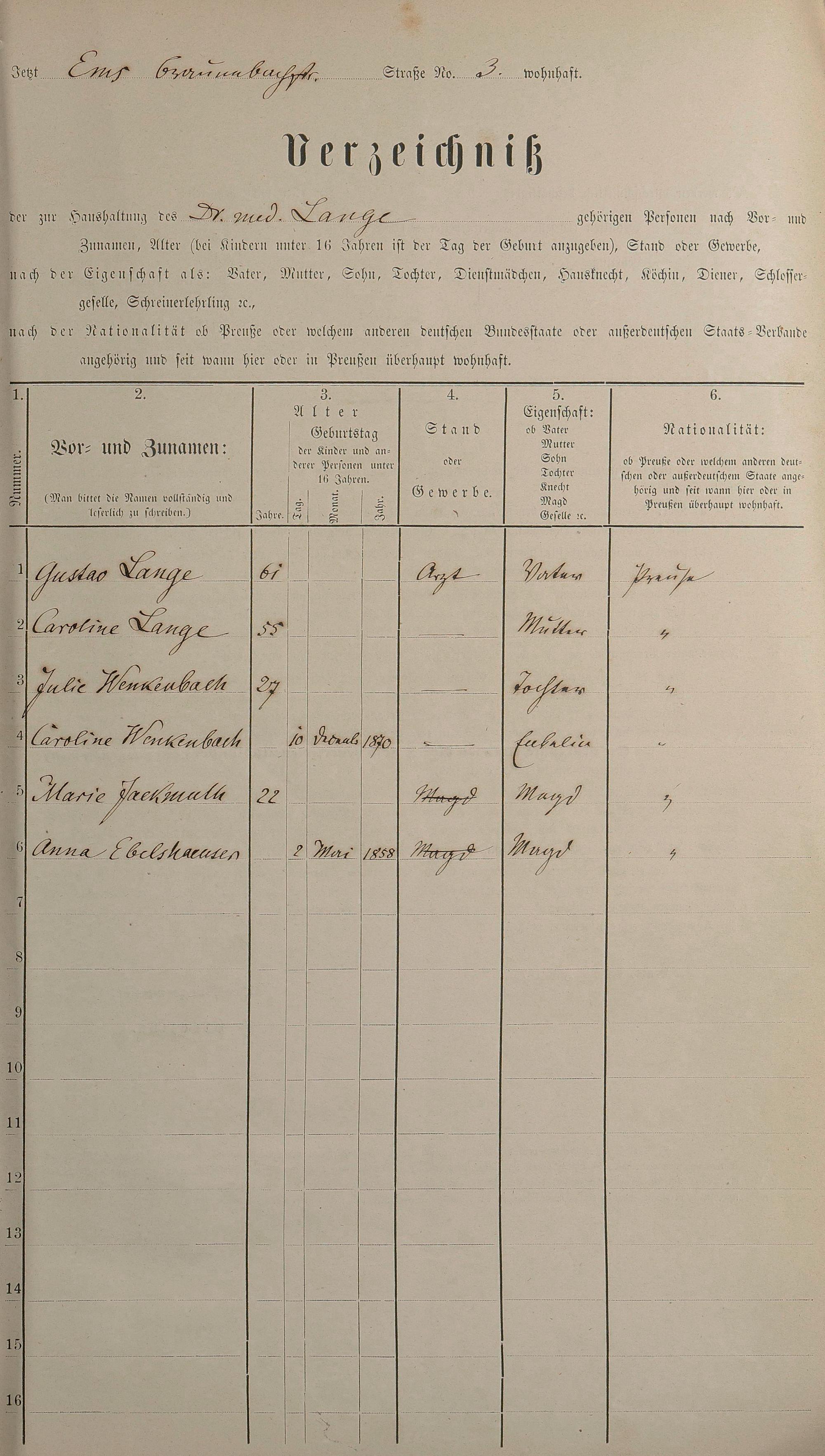 Personenstandsaufnahme zur Klassensteuerrolle für 1873