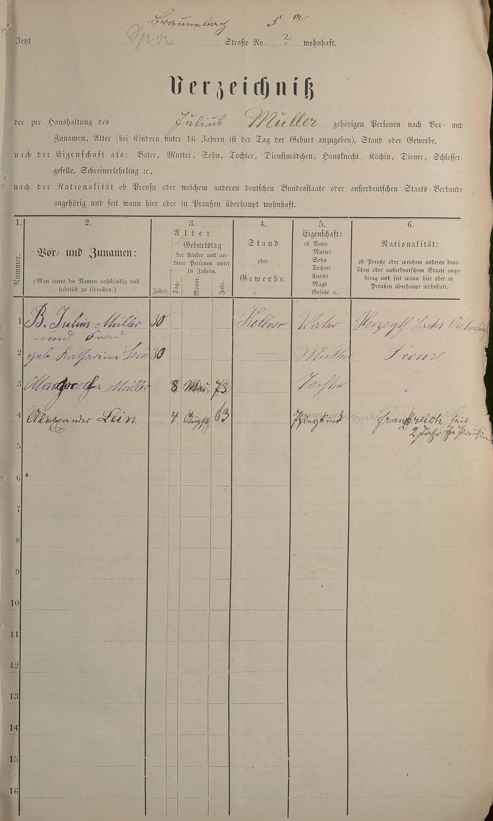 Personenstandsaufnahme zur Klassensteuerrolle für 1873