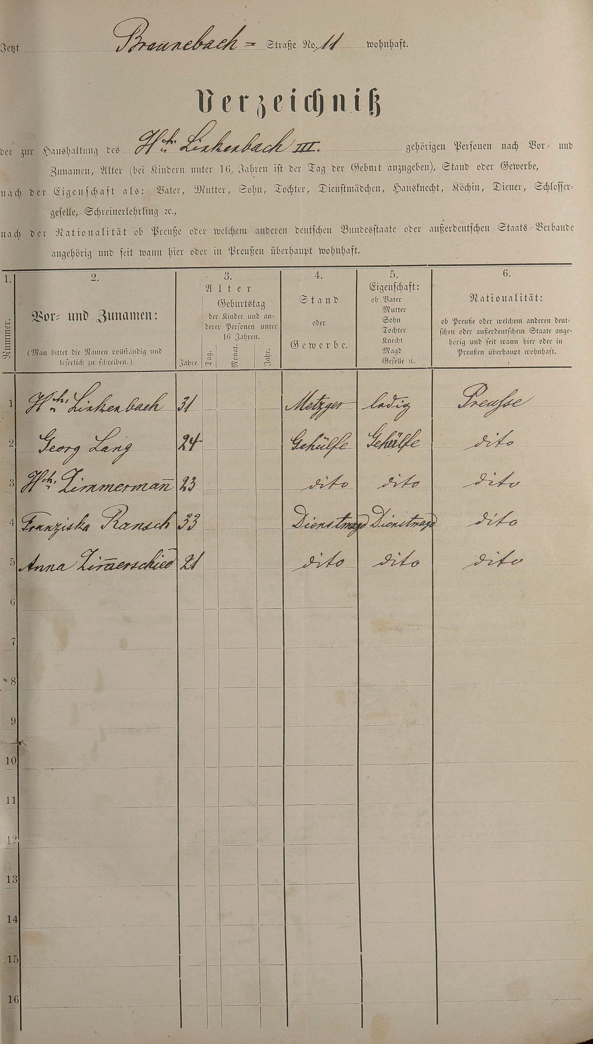 Personenstandsaufnahme zur Klassensteuerrolle für 1873