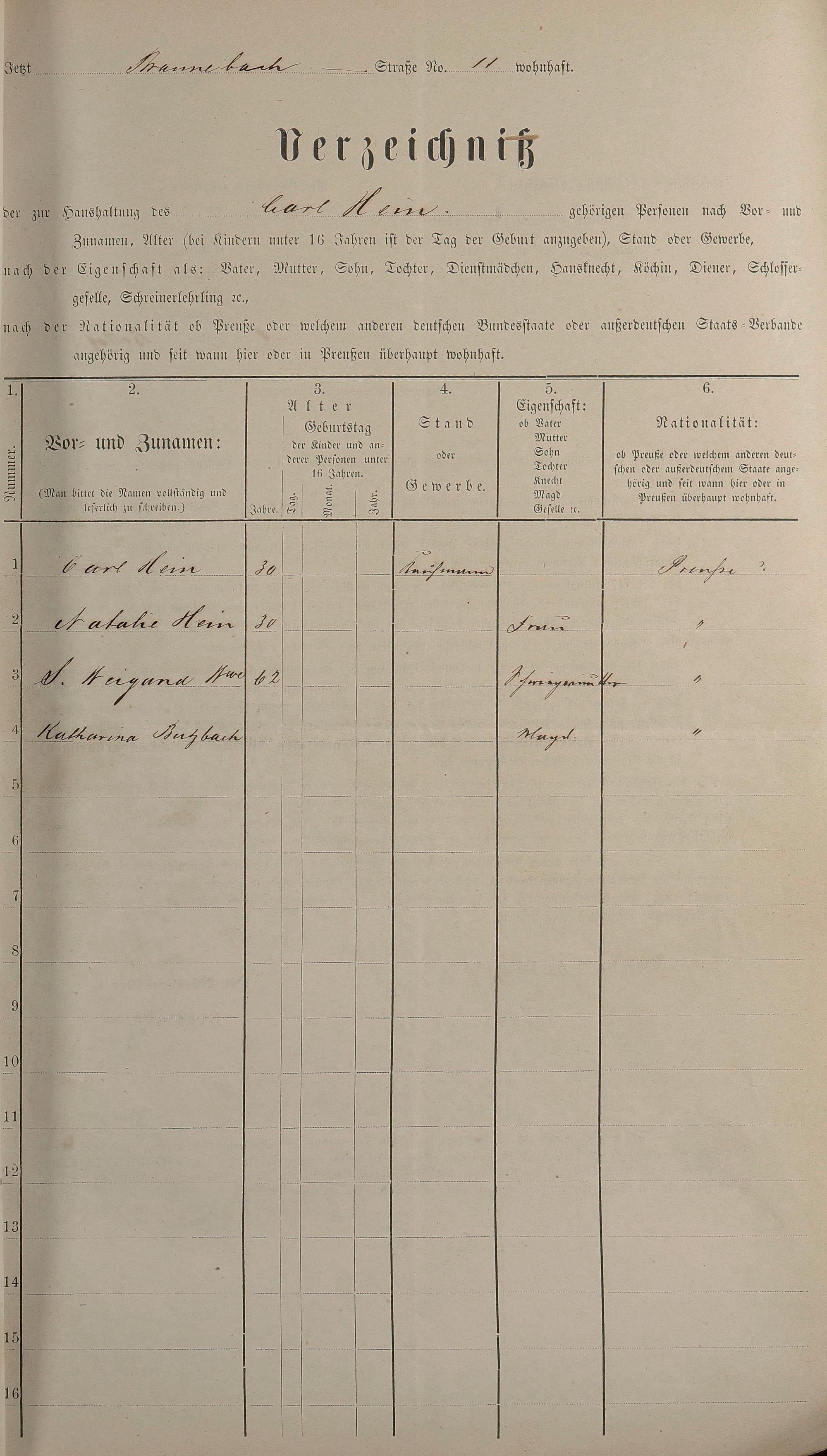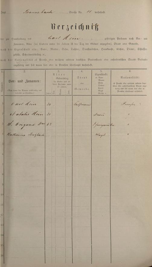 Personenstandsaufnahme zur Klassensteuerrolle für 1873