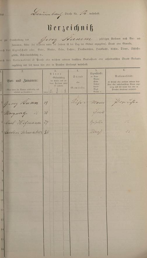 Personenstandsaufnahme zur Klassensteuerrolle für 1873