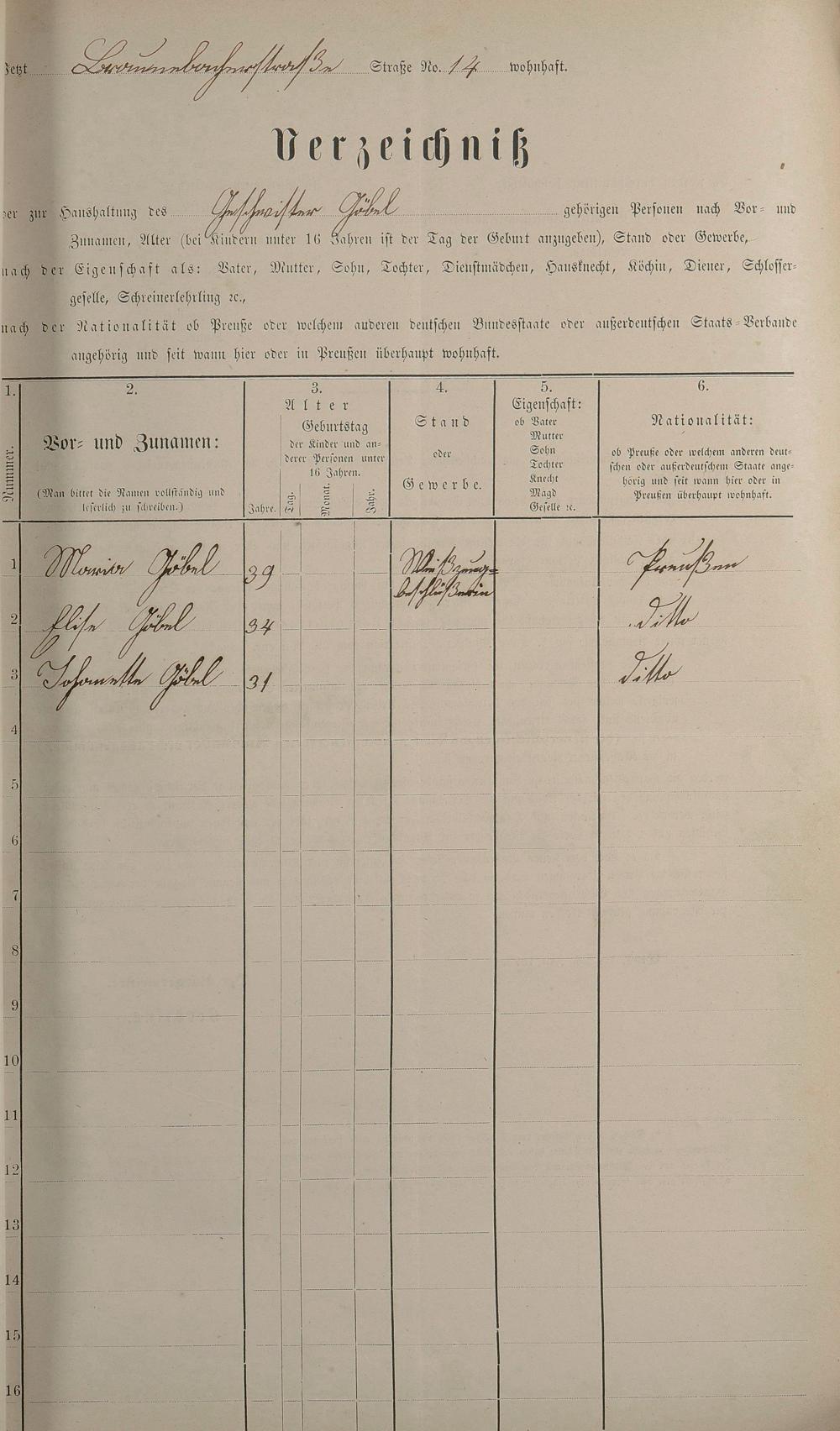 Personenstandsaufnahme zur Klassensteuerrolle für 1873