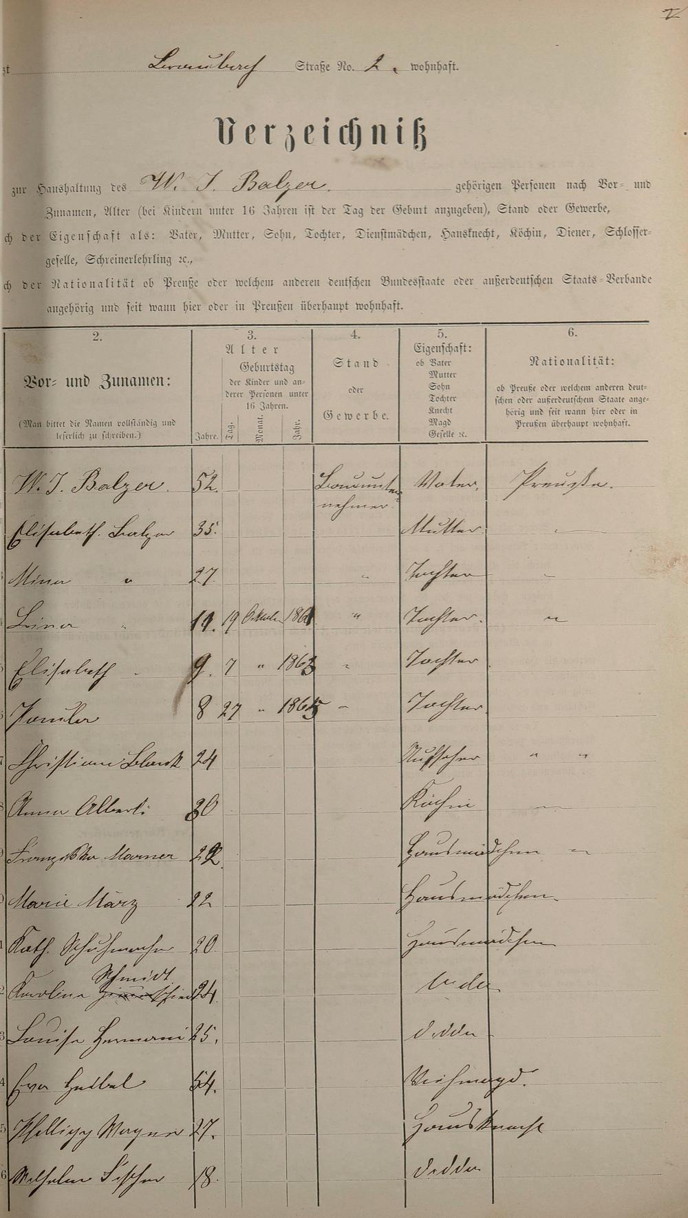 Personenstandsaufnahme zur Klassensteuerrolle für 1873