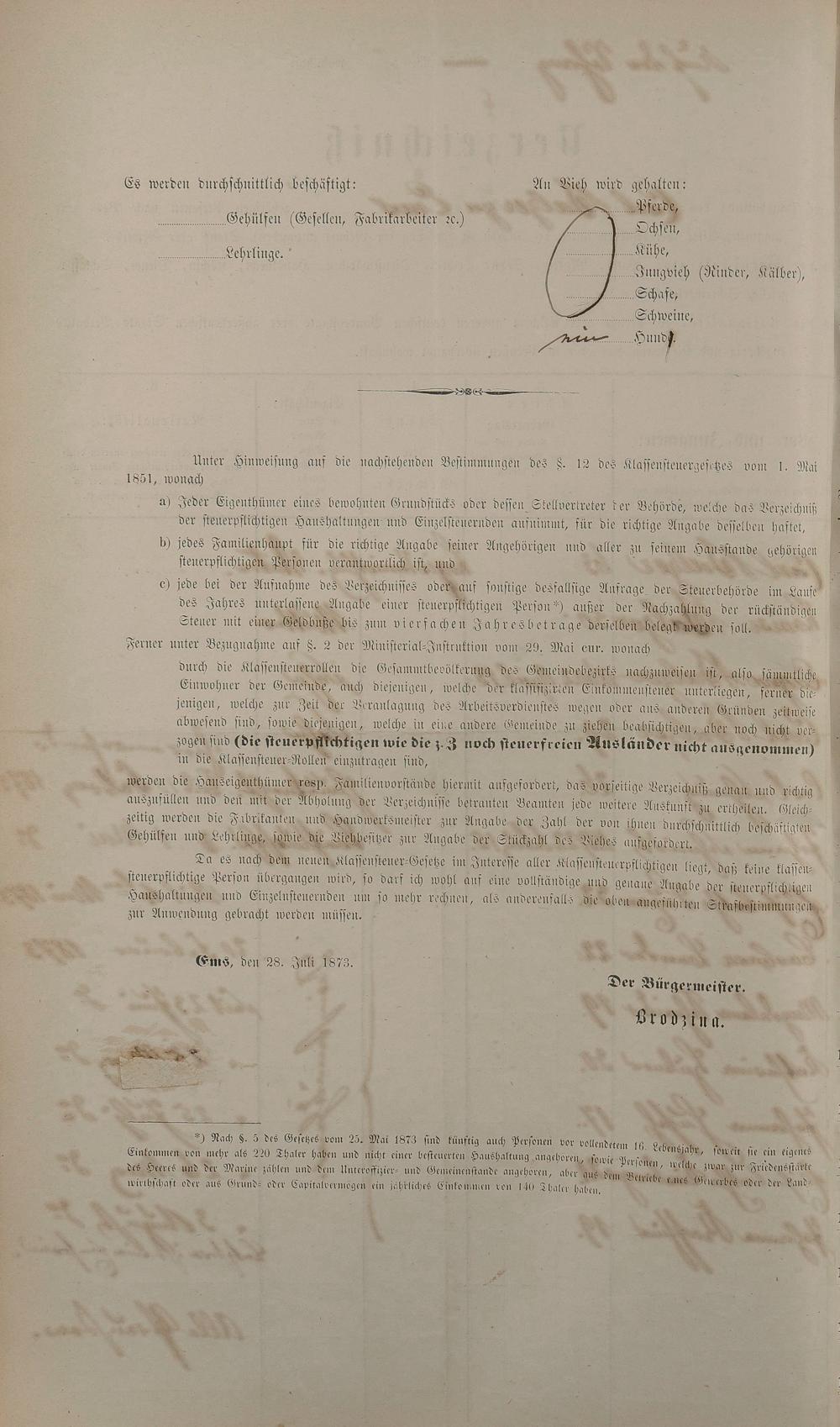 Personenstandsaufnahme zur Klassensteuerrolle für 1873