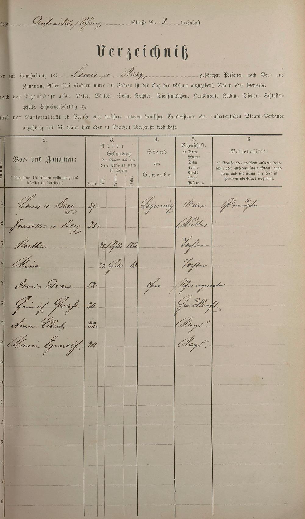 Personenstandsaufnahme zur Klassensteuerrolle für 1873