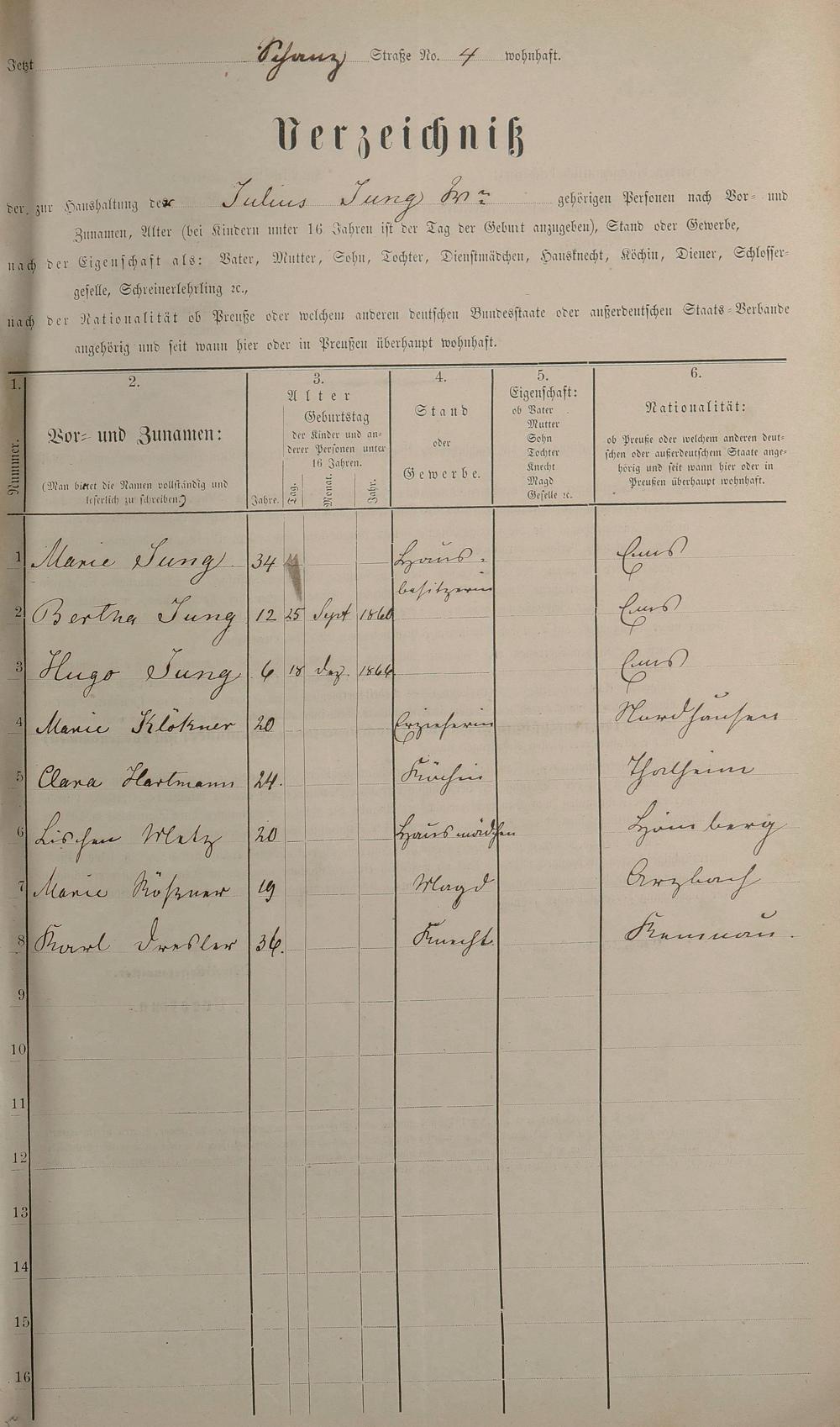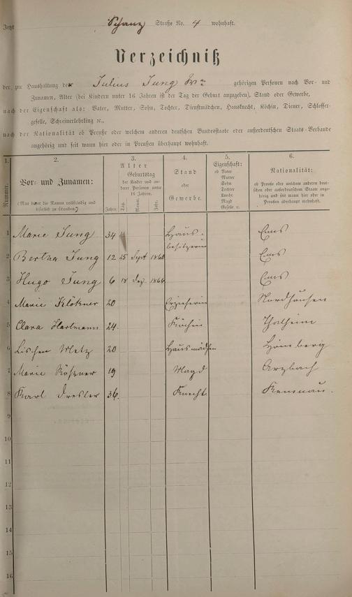 Personenstandsaufnahme zur Klassensteuerrolle für 1873