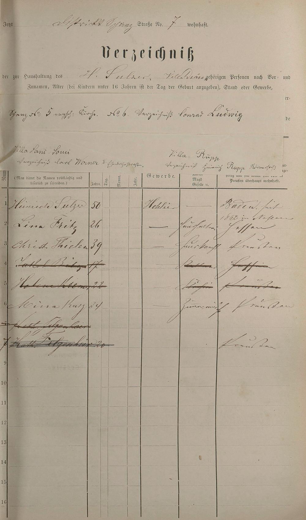 Personenstandsaufnahme zur Klassensteuerrolle für 1873