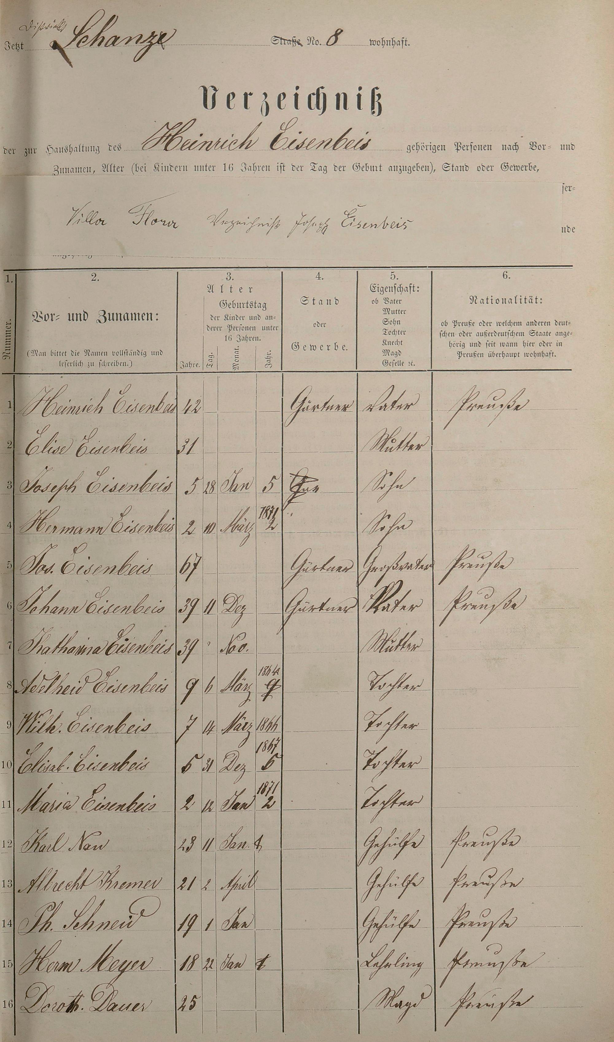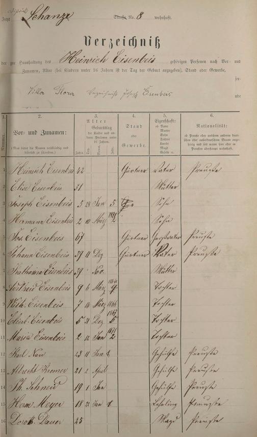 Personenstandsaufnahme zur Klassensteuerrolle für 1873