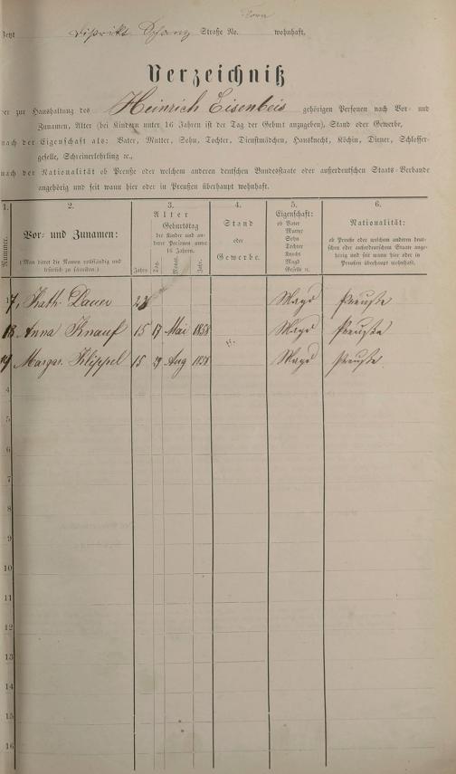 Personenstandsaufnahme zur Klassensteuerrolle für 1873