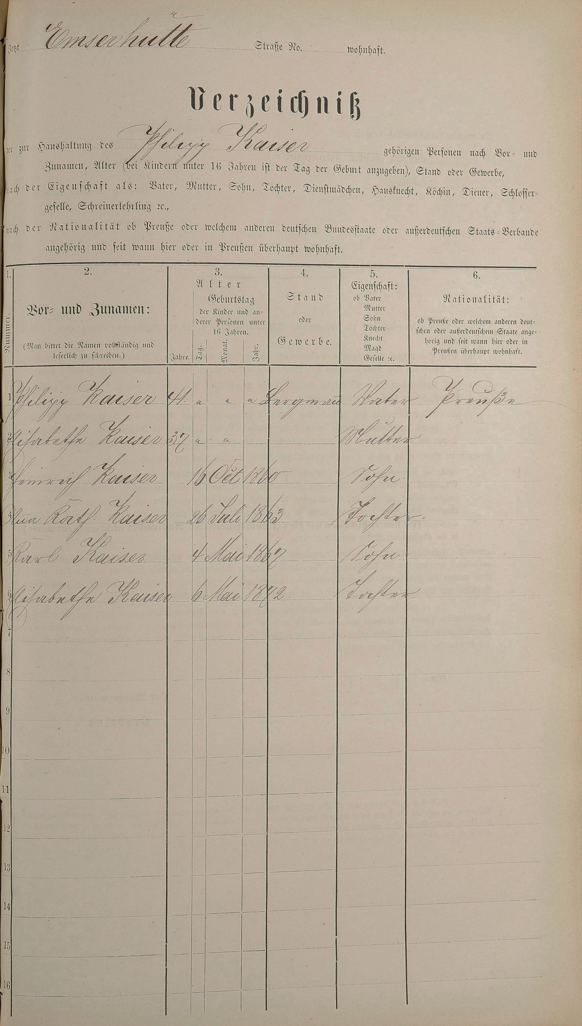 Personenstandsaufnahme zur Klassensteuerrolle für 1873