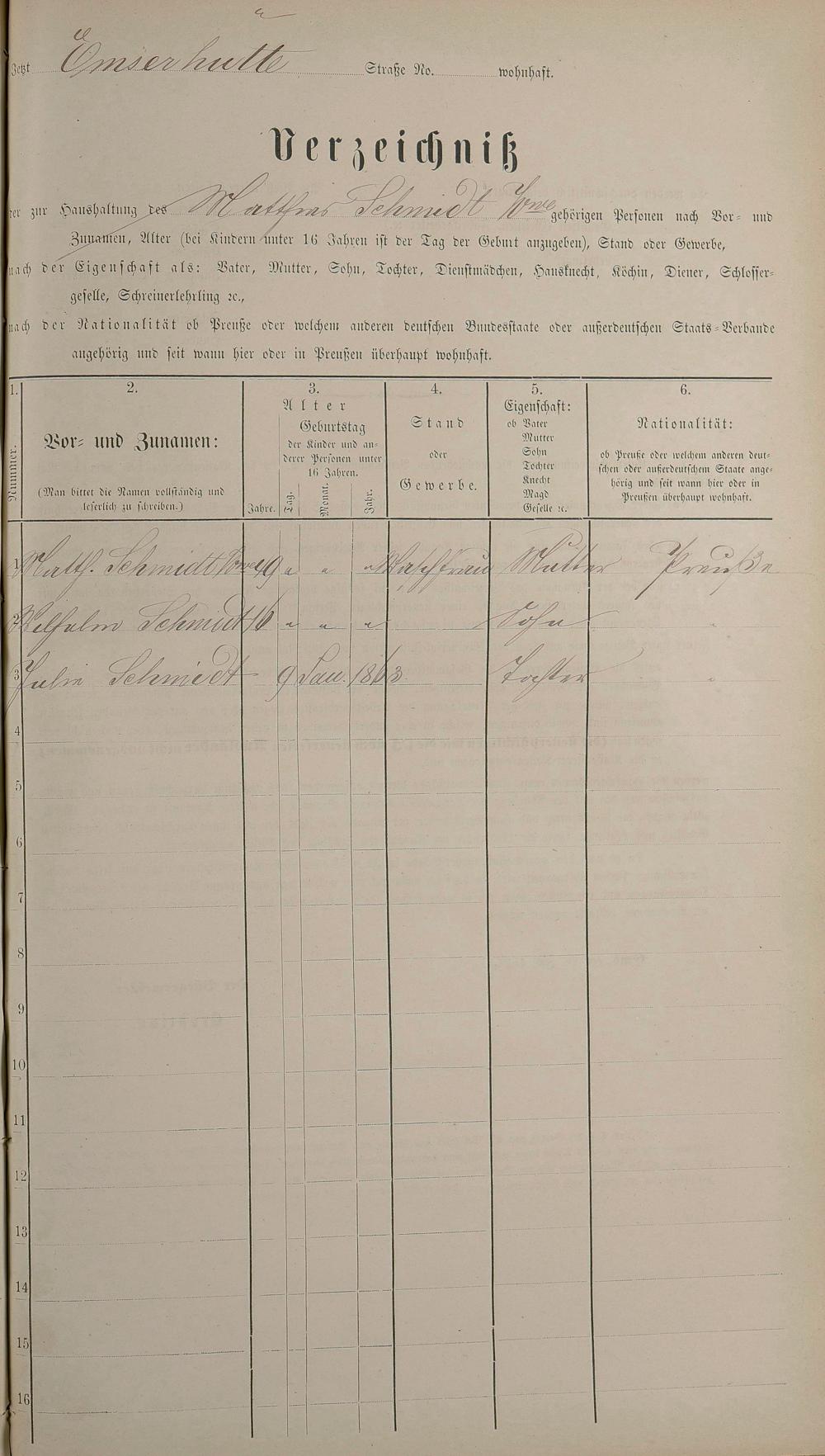 Personenstandsaufnahme zur Klassensteuerrolle für 1873
