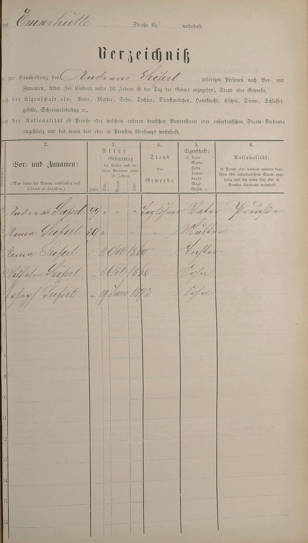 Personenstandsaufnahme zur Klassensteuerrolle für 1873