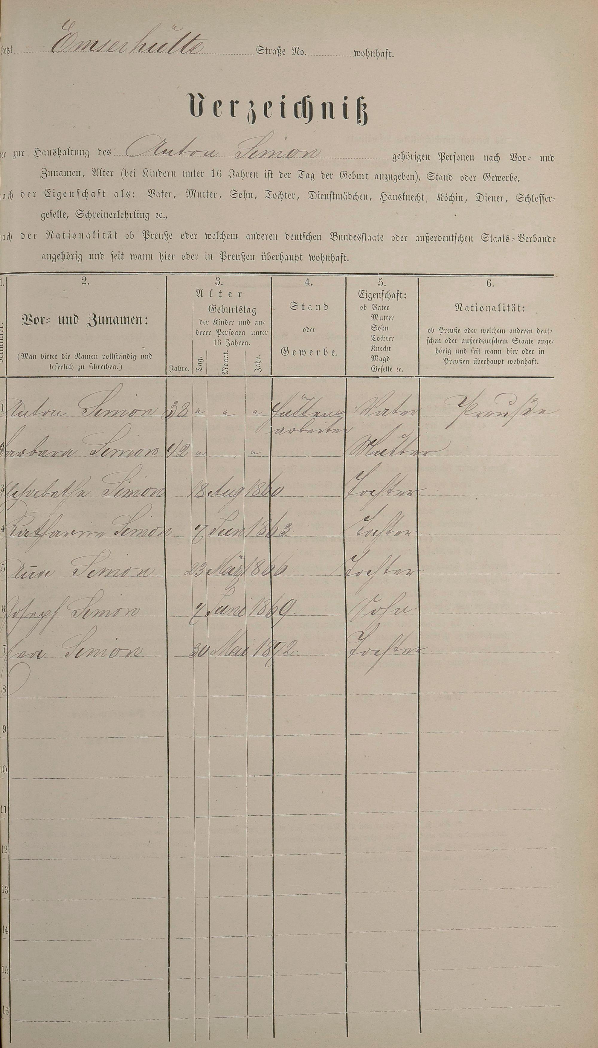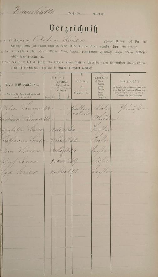 Personenstandsaufnahme zur Klassensteuerrolle für 1873