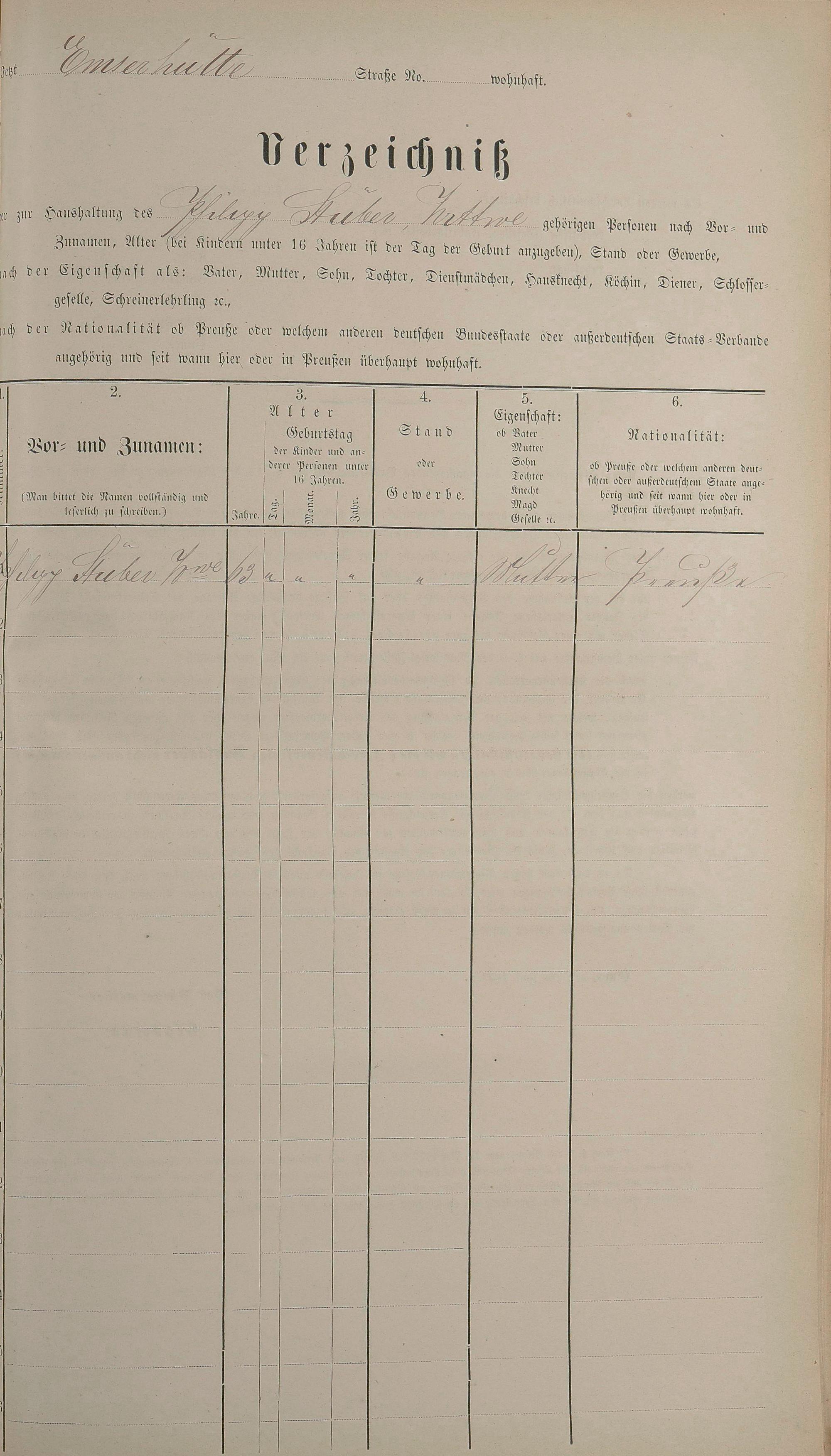 Personenstandsaufnahme zur Klassensteuerrolle für 1873
