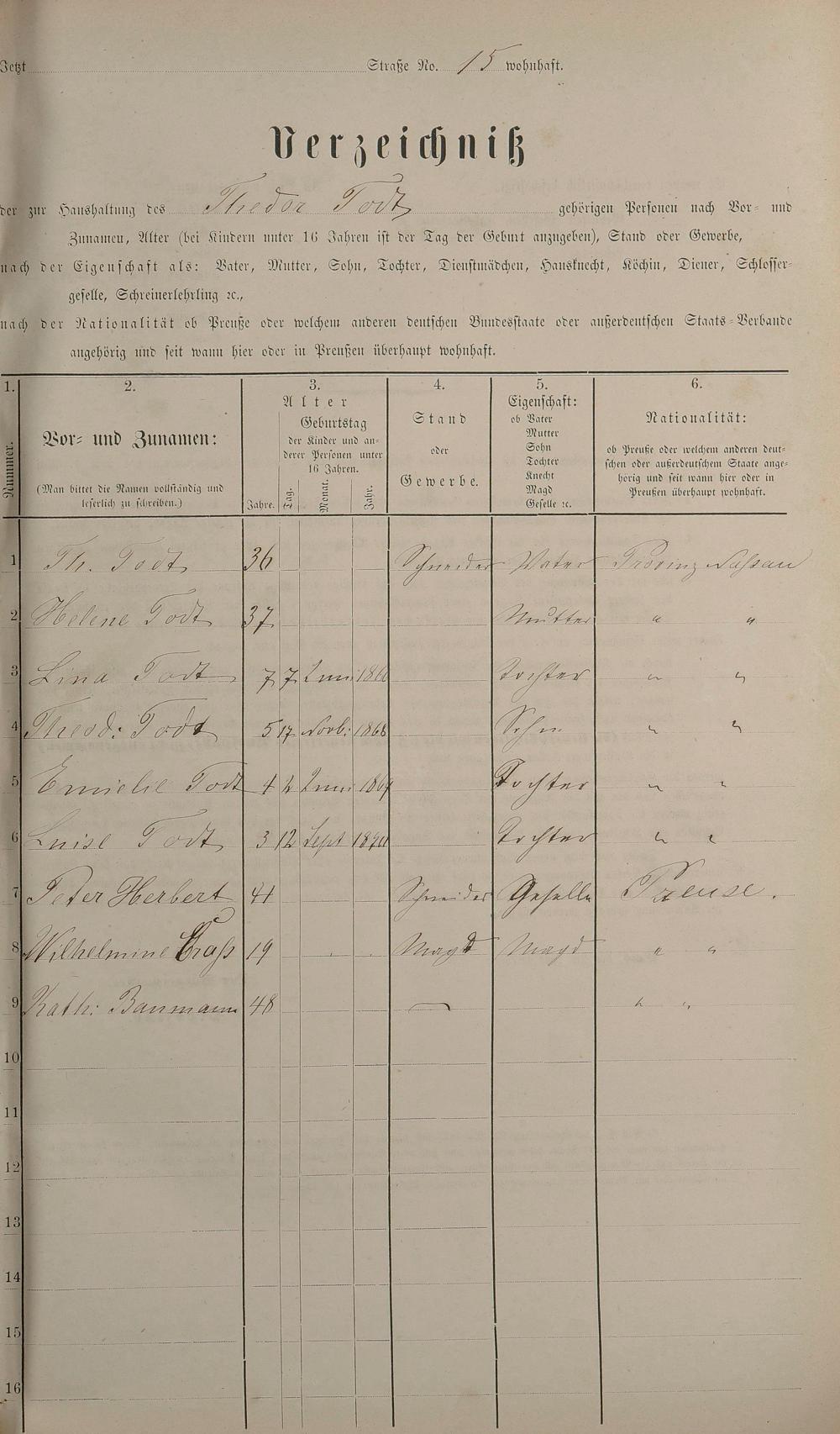 Personenstandsaufnahme zur Klassensteuerrolle für 1873