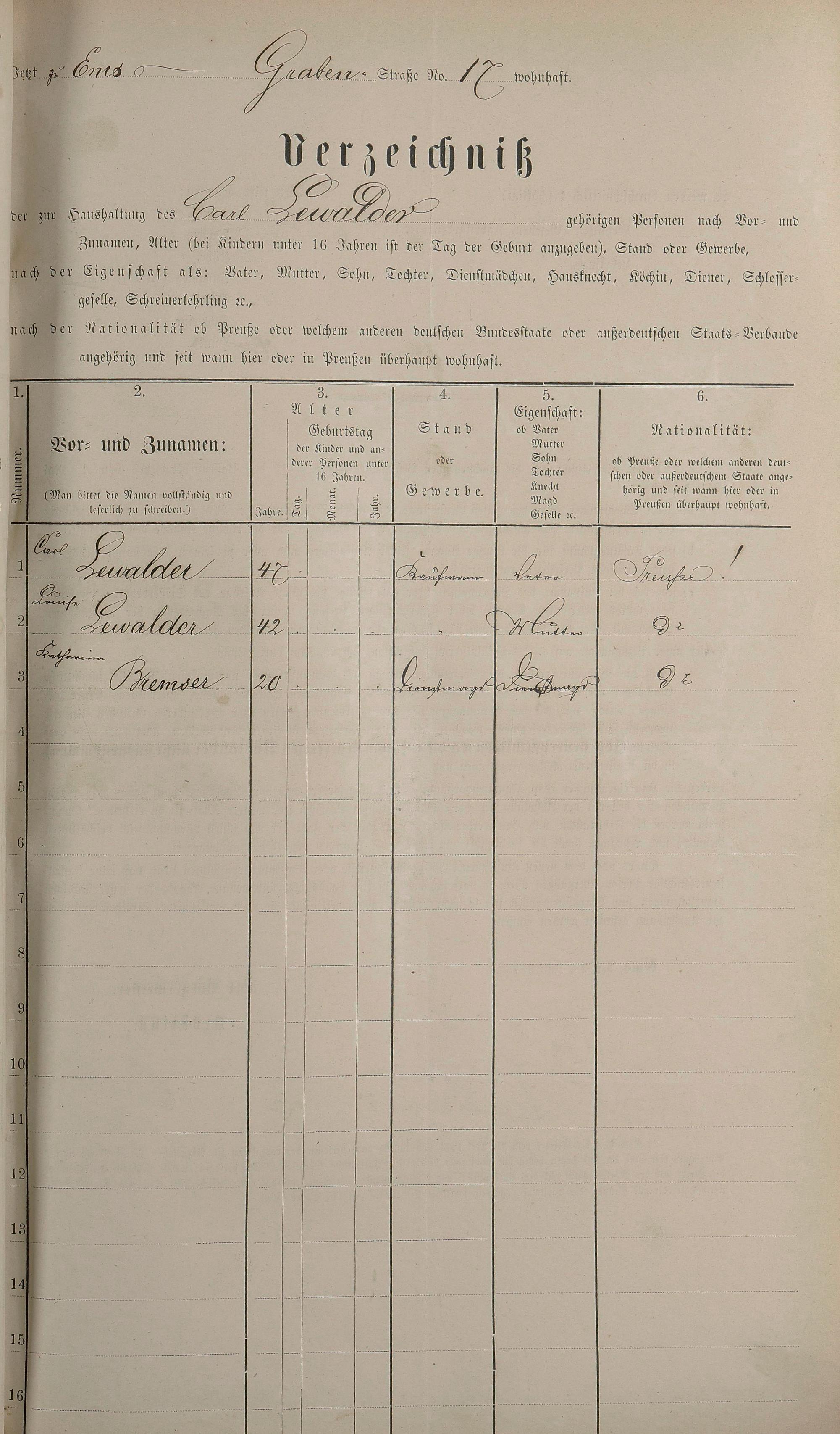 Personenstandsaufnahme zur Klassensteuerrolle für 1873