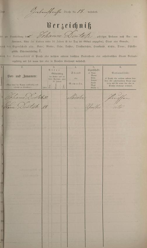 Personenstandsaufnahme zur Klassensteuerrolle für 1873
