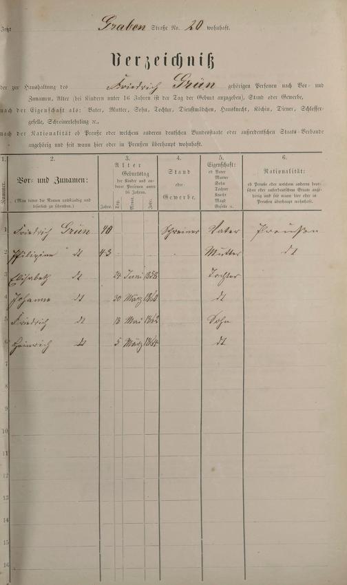 Personenstandsaufnahme zur Klassensteuerrolle für 1873