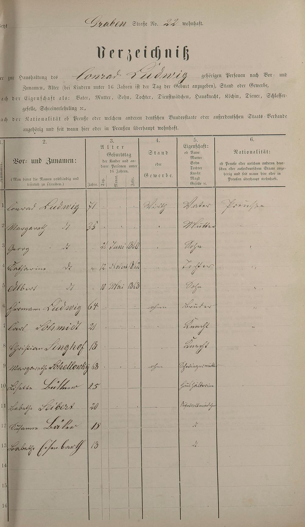 234: Personenstandsaufnahme zur Klassensteuerrolle für 1873