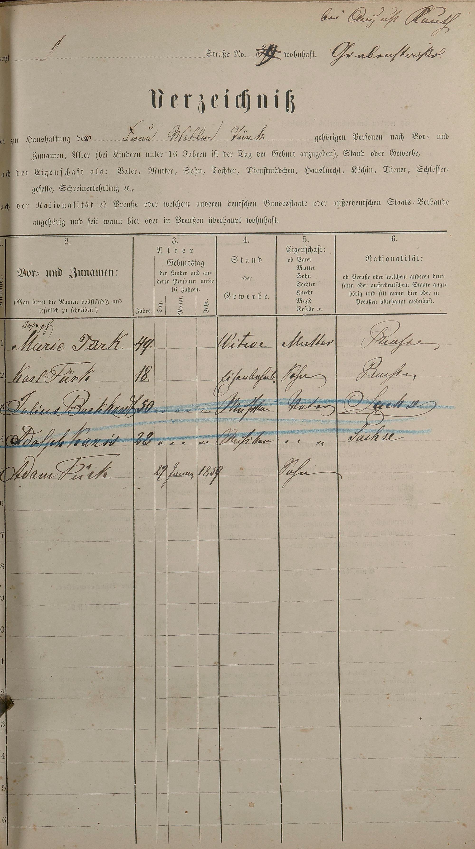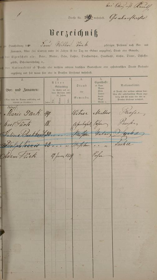 Personenstandsaufnahme zur Klassensteuerrolle für 1873