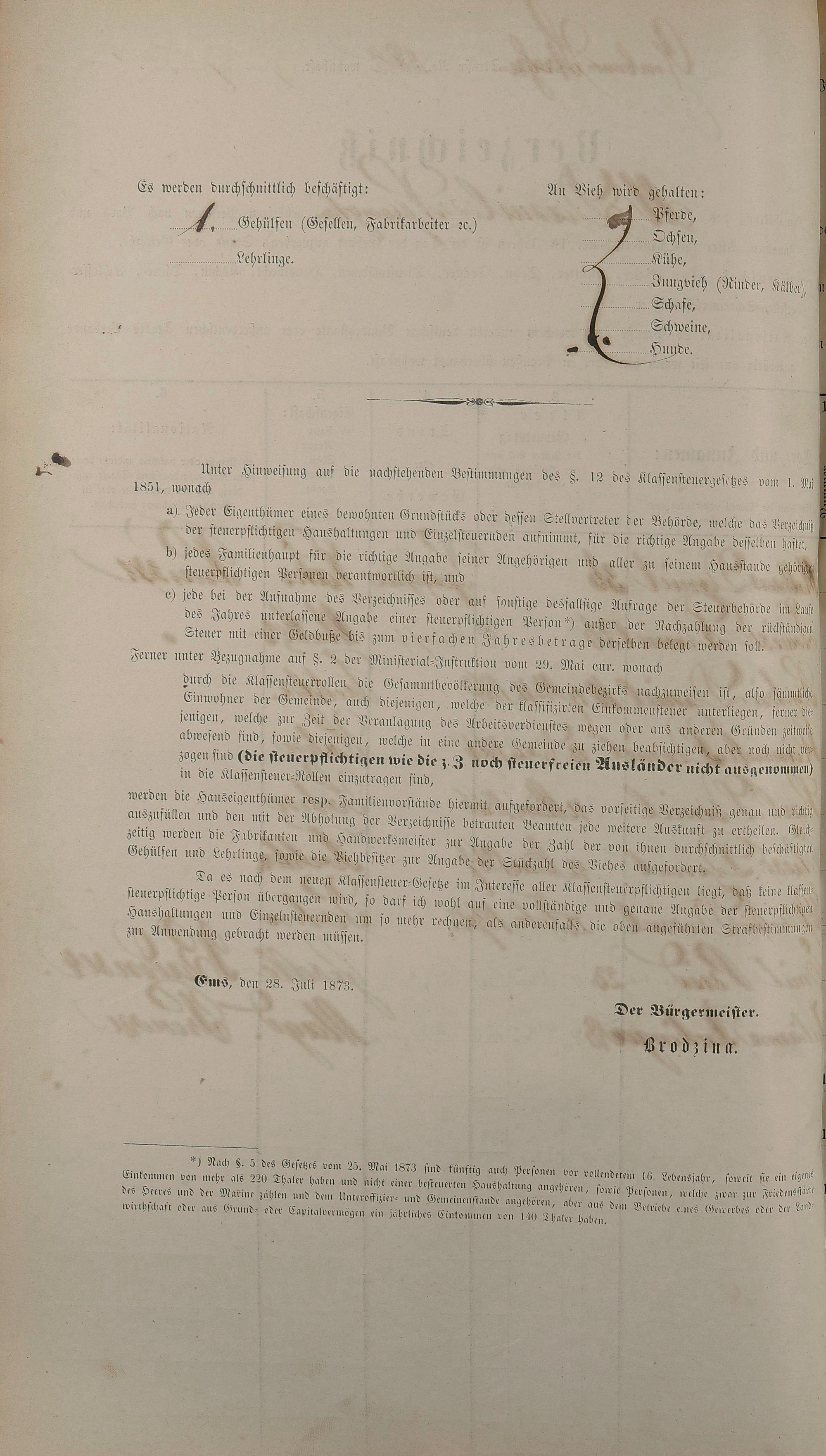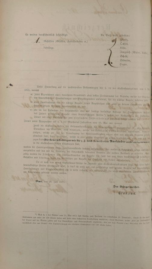 Personenstandsaufnahme zur Klassensteuerrolle für 1873