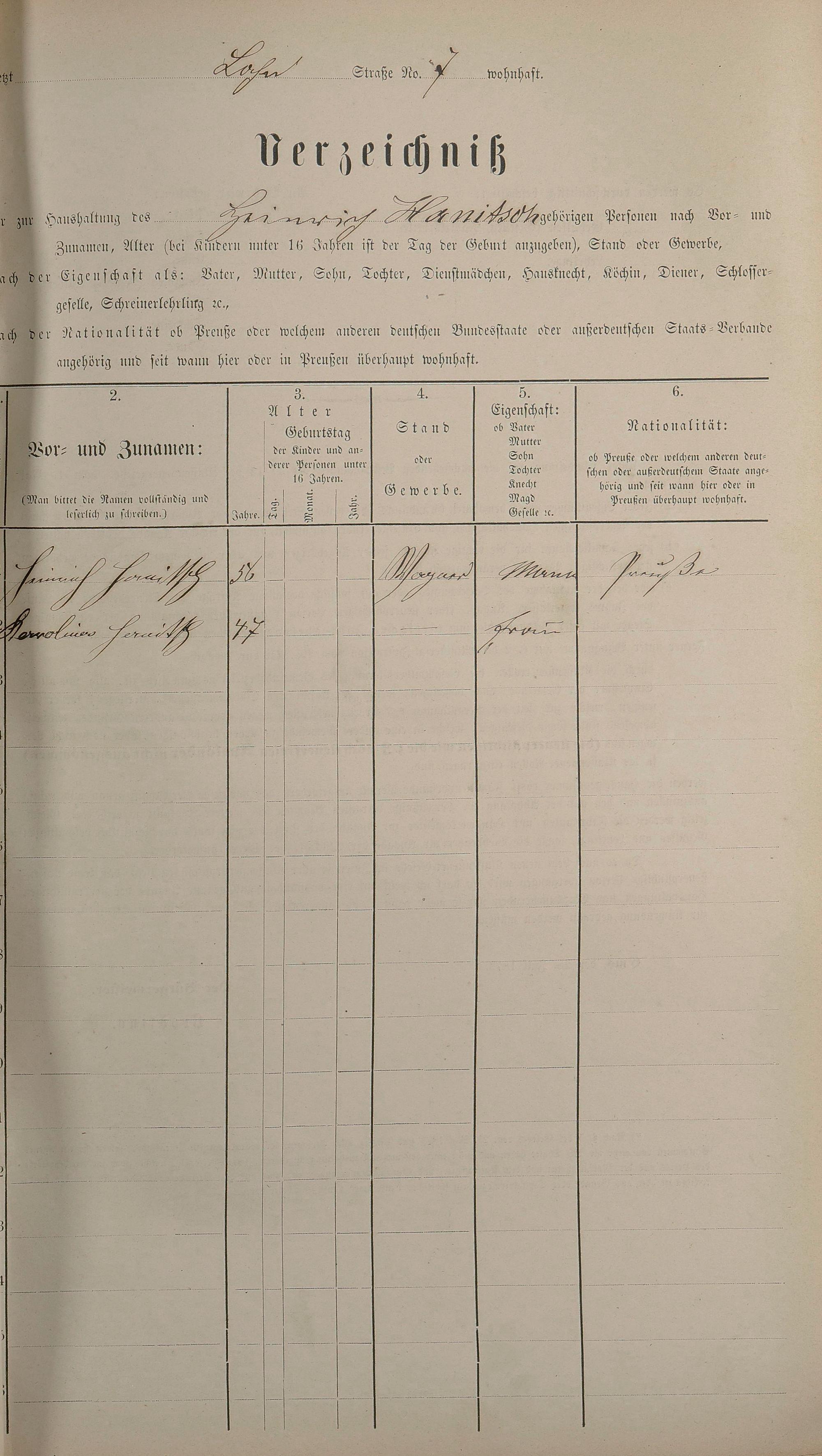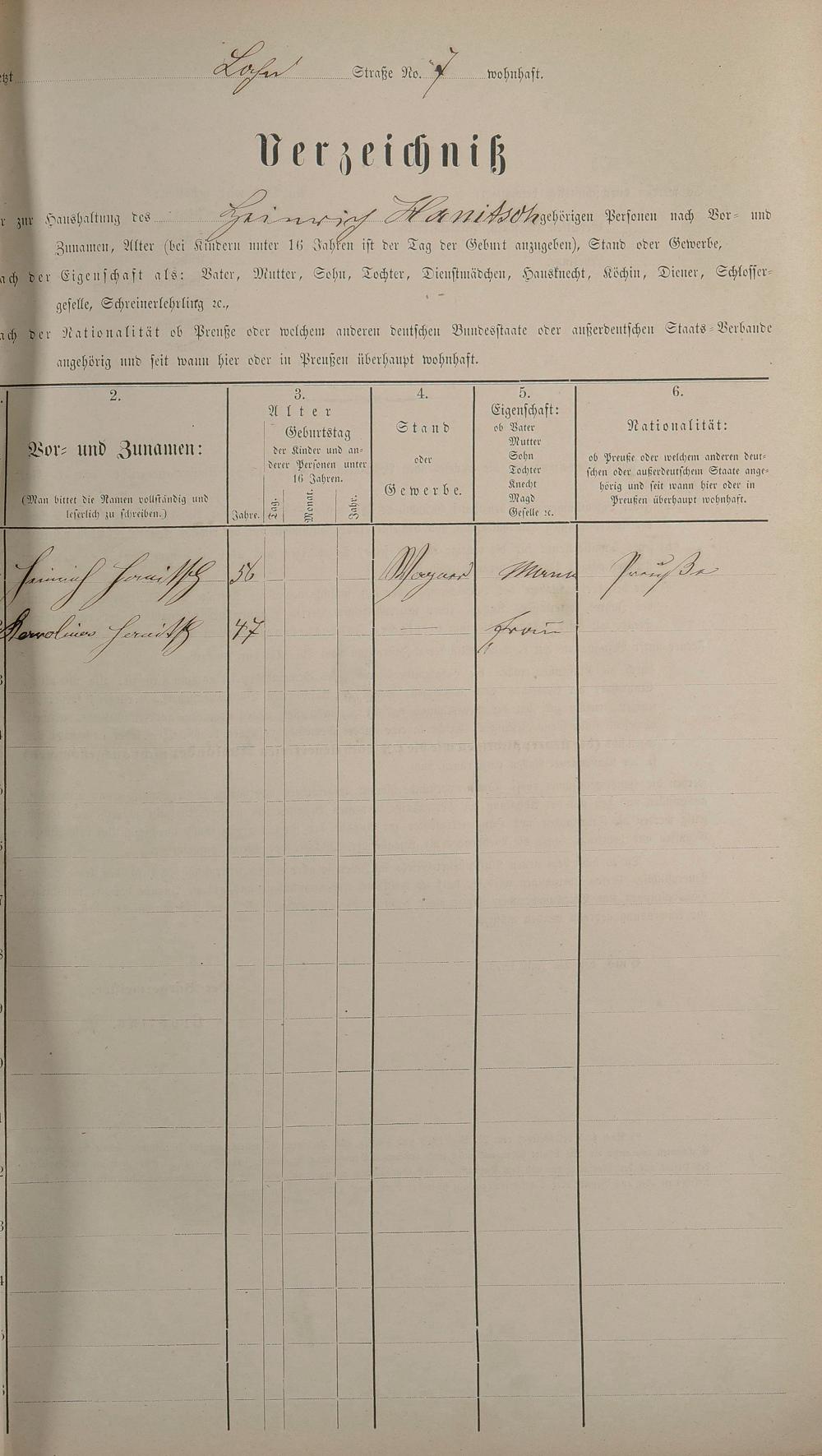 Personenstandsaufnahme zur Klassensteuerrolle für 1873