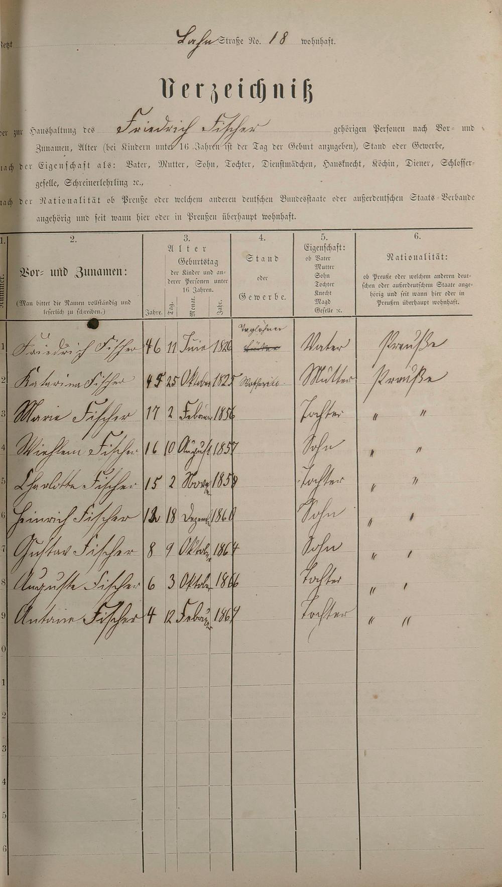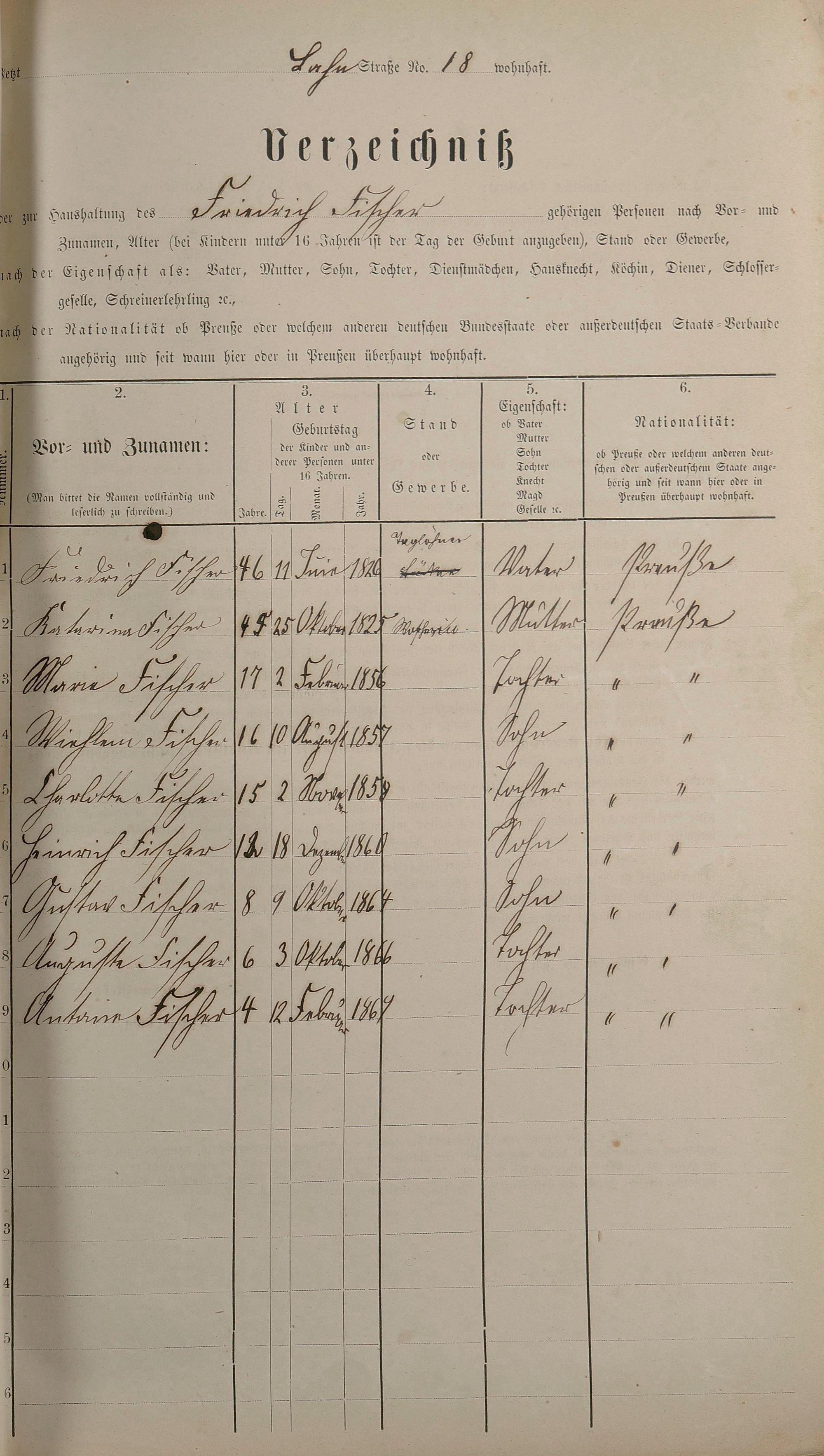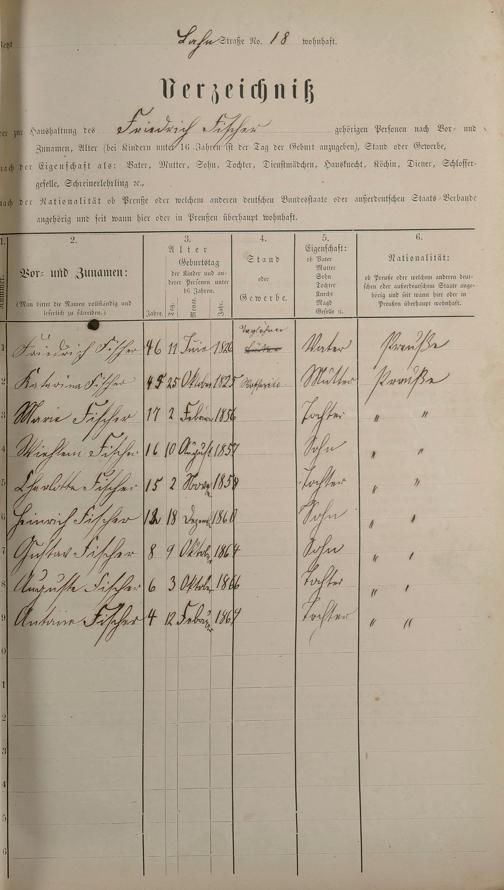 Personenstandsaufnahme zur Klassensteuerrolle für 1873