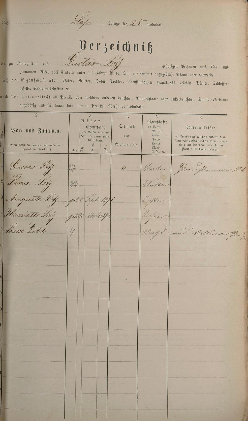 Personenstandsaufnahme zur Klassensteuerrolle für 1873