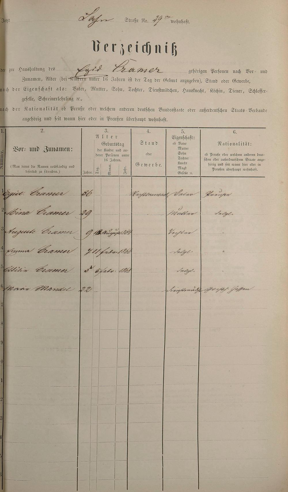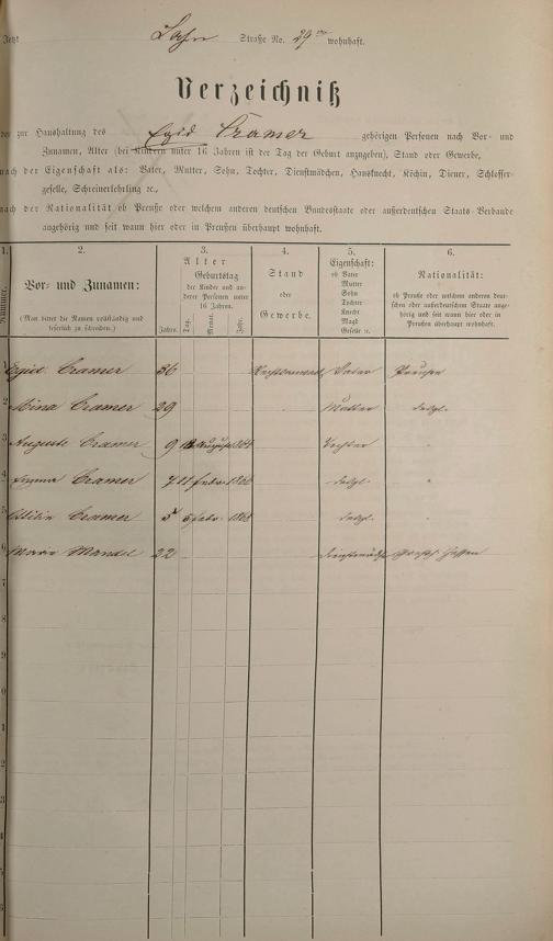 Personenstandsaufnahme zur Klassensteuerrolle für 1873