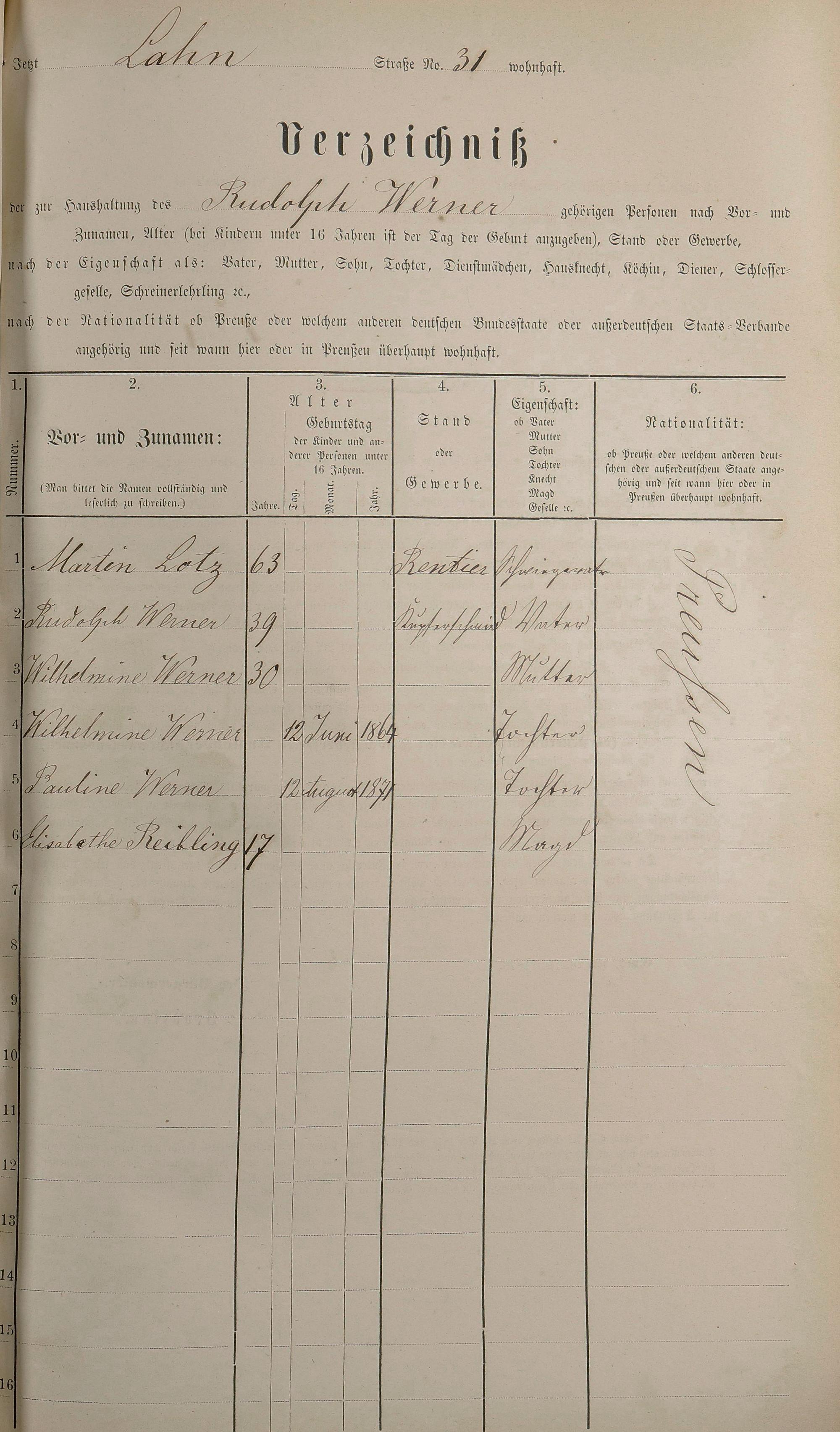Personenstandsaufnahme zur Klassensteuerrolle für 1873