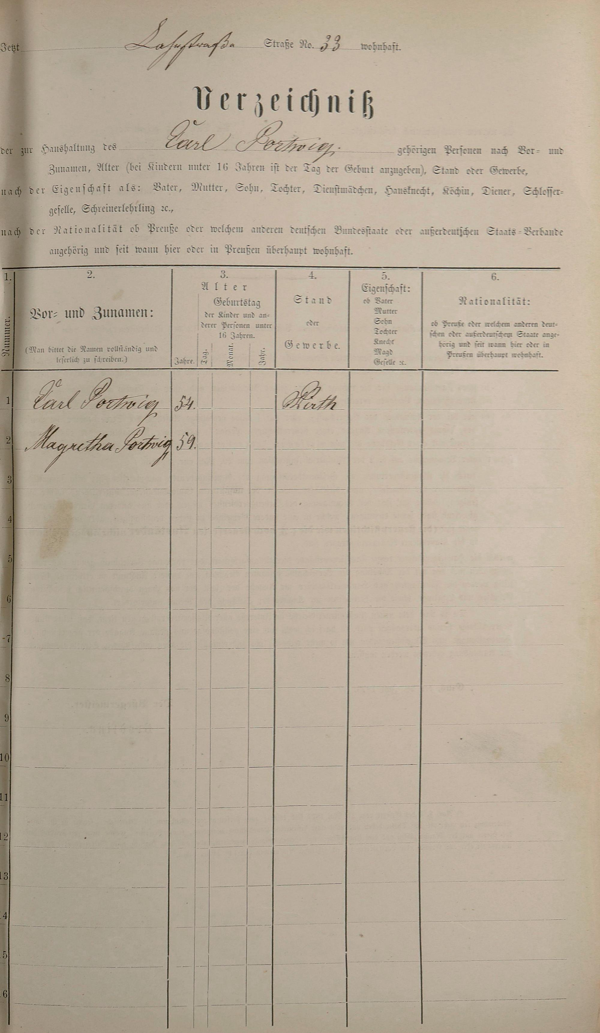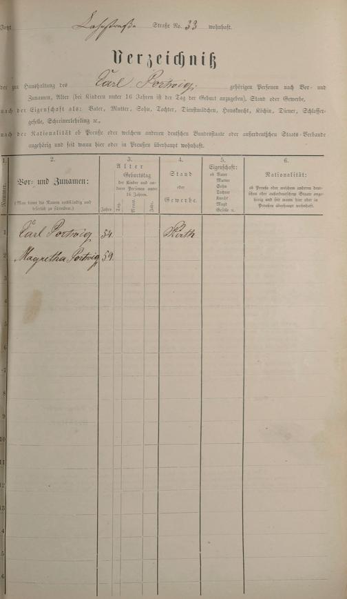 Personenstandsaufnahme zur Klassensteuerrolle für 1873