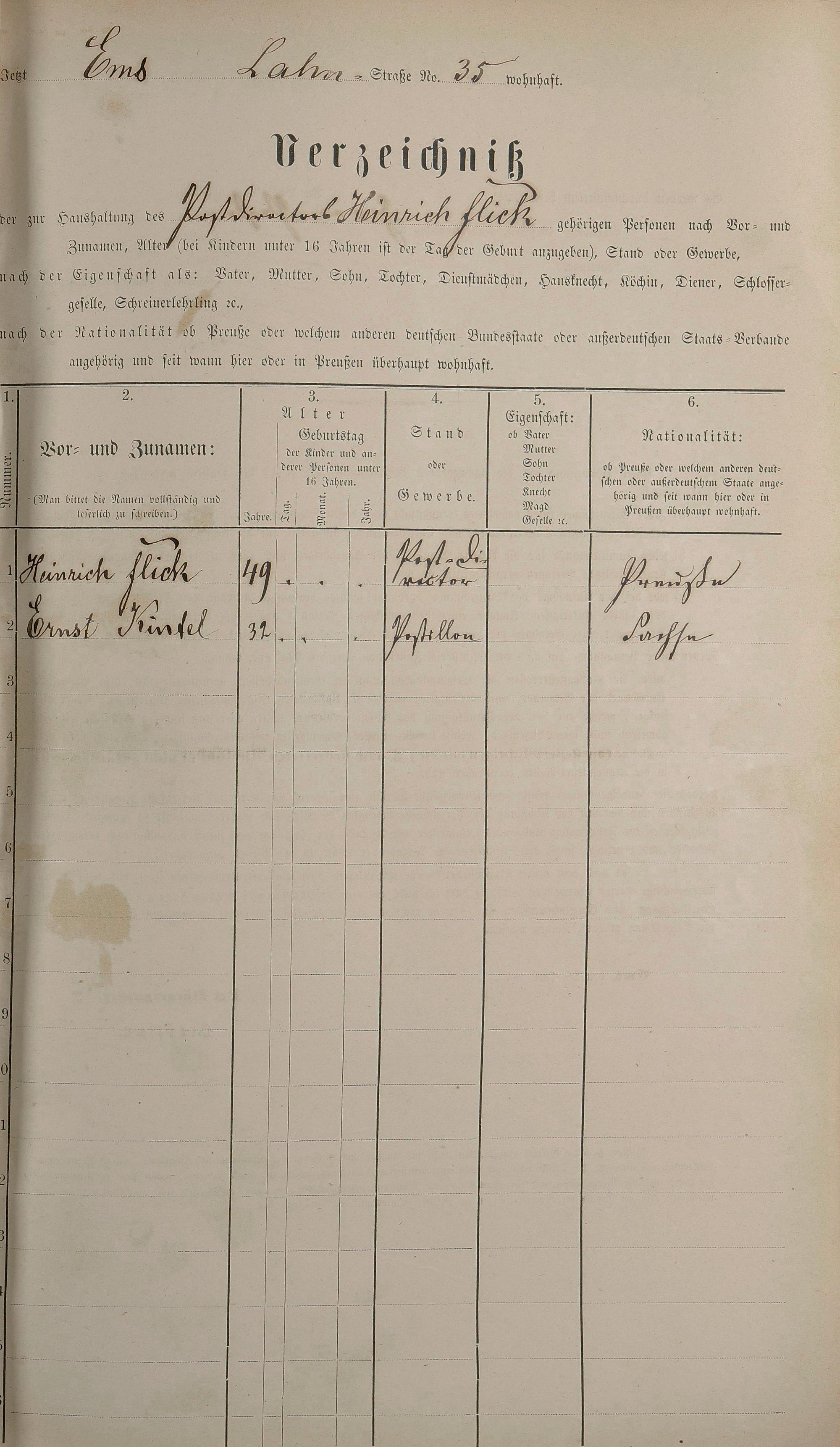 Personenstandsaufnahme zur Klassensteuerrolle für 1873