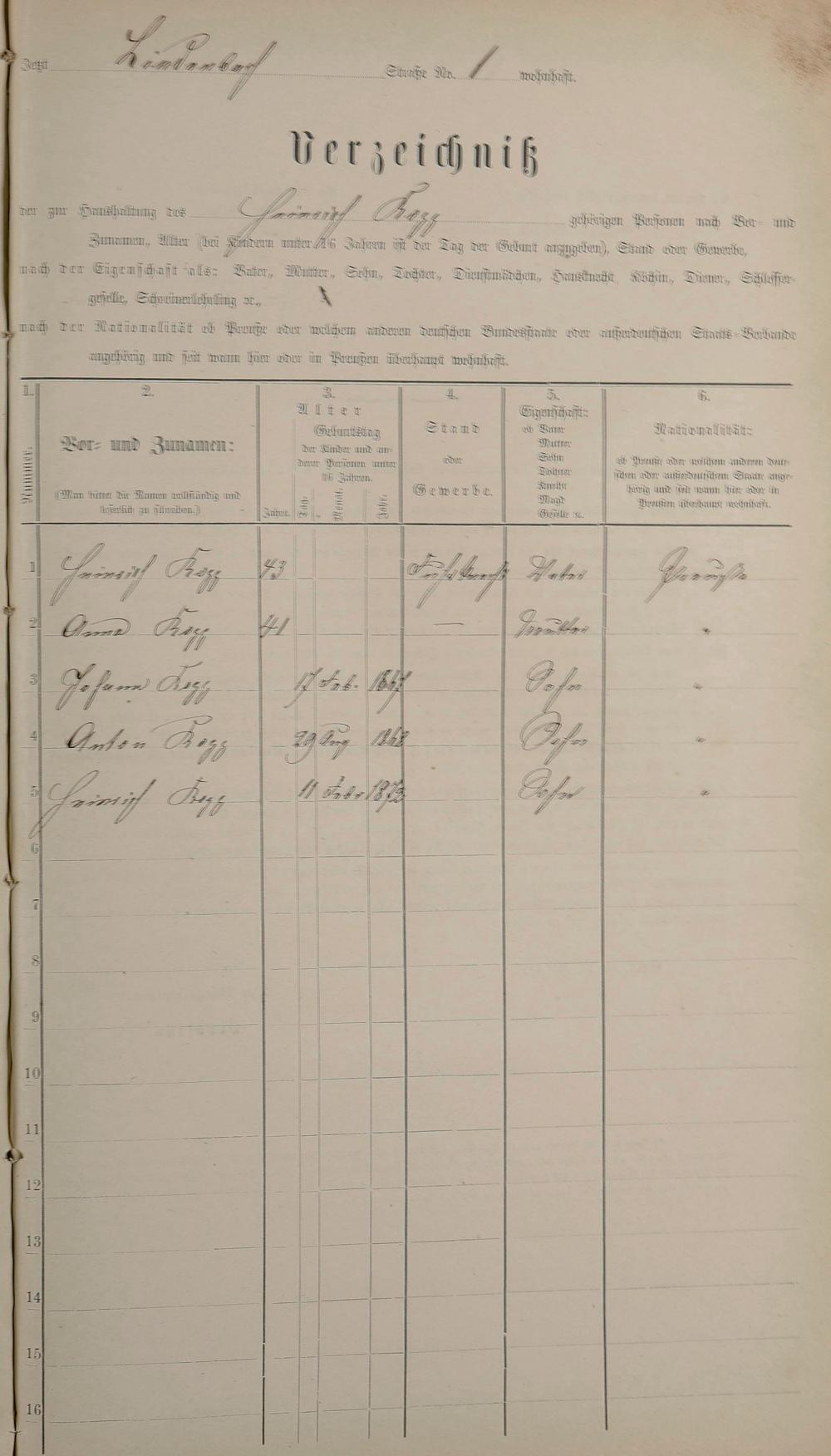 Personenstandsaufnahme zur Klassensteuerrolle für 1873