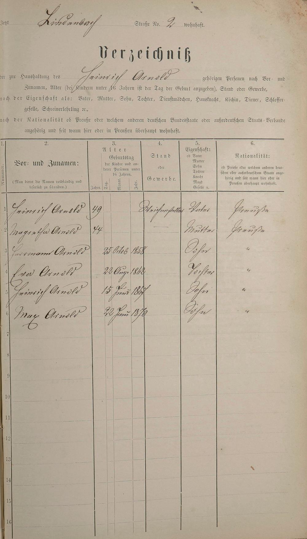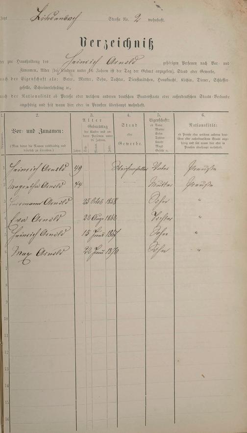 Personenstandsaufnahme zur Klassensteuerrolle für 1873