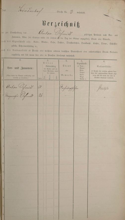 Personenstandsaufnahme zur Klassensteuerrolle für 1873