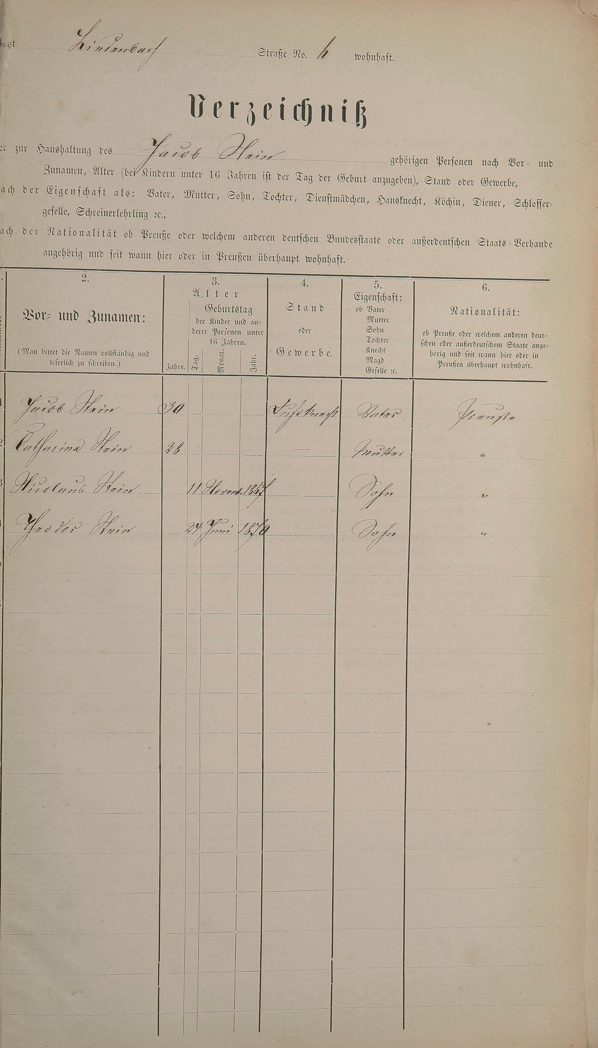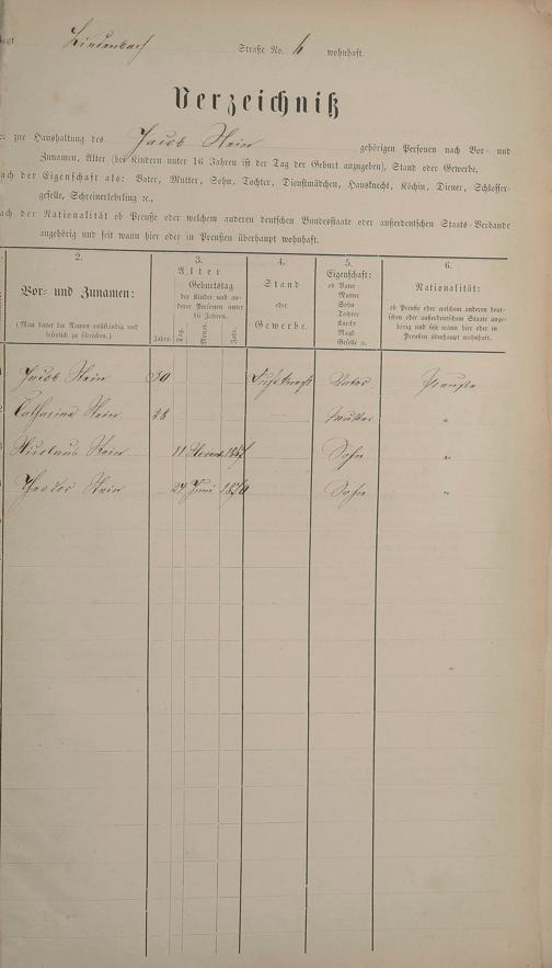 Personenstandsaufnahme zur Klassensteuerrolle für 1873
