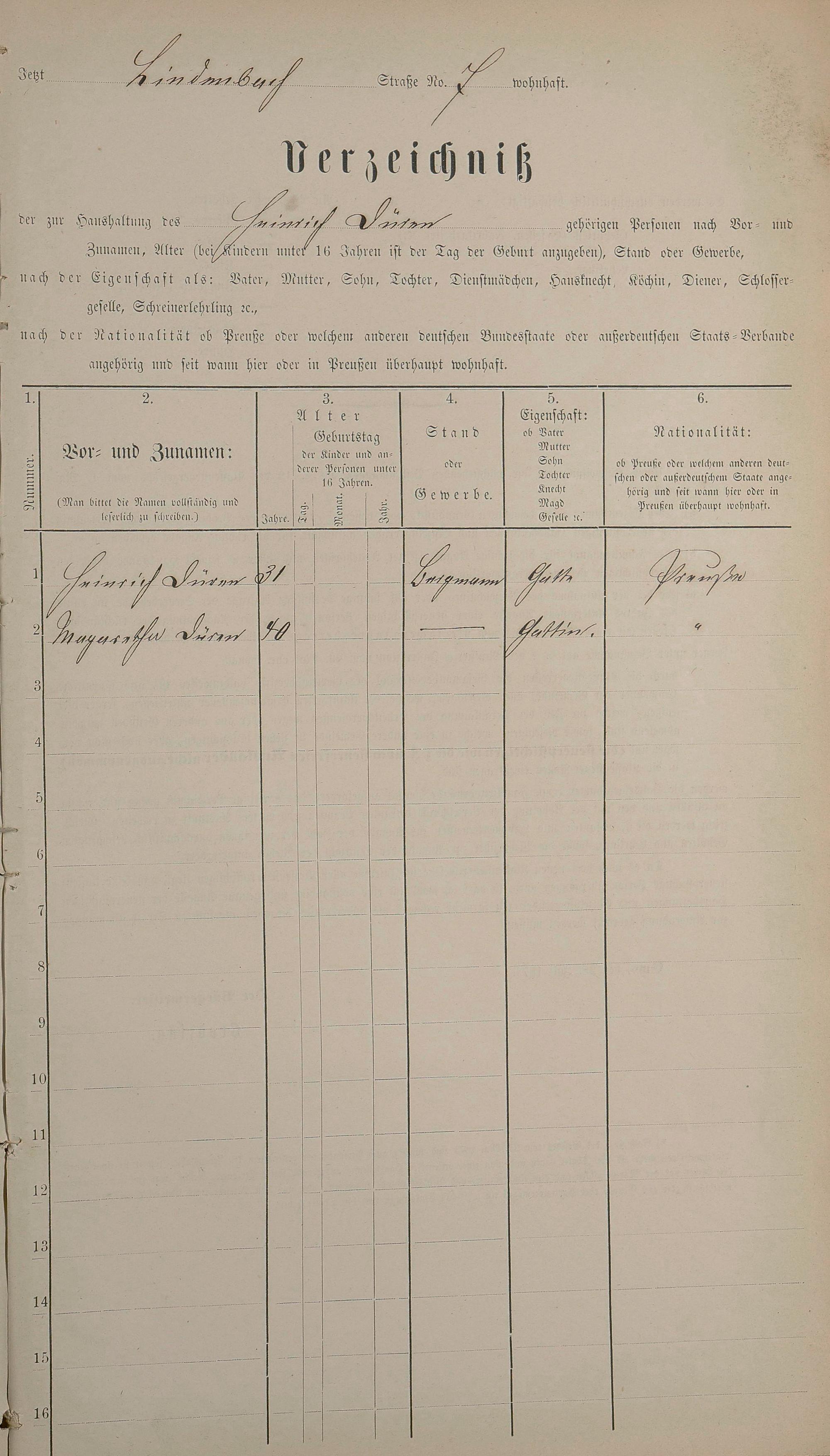 Personenstandsaufnahme zur Klassensteuerrolle für 1873