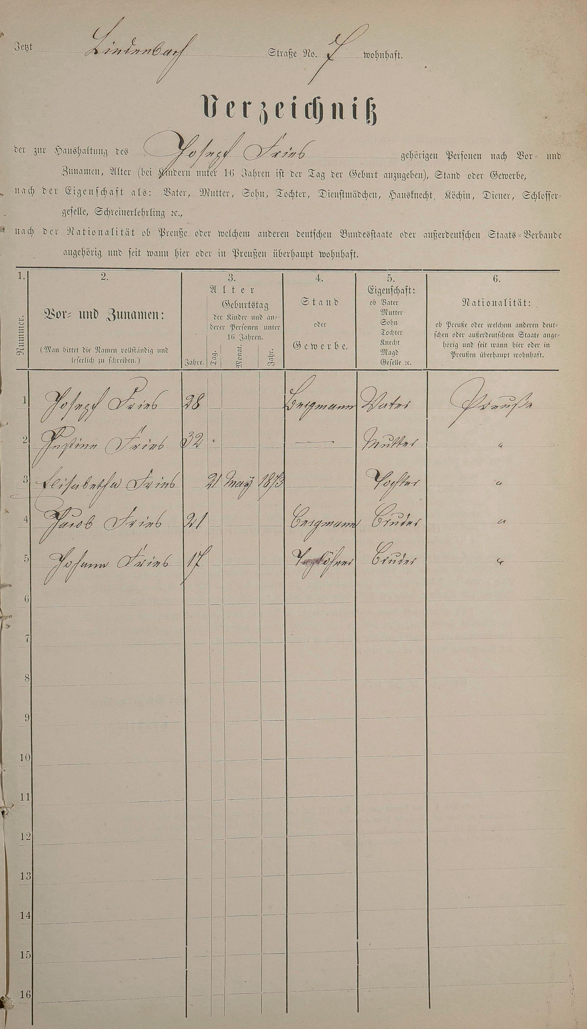 Personenstandsaufnahme zur Klassensteuerrolle für 1873