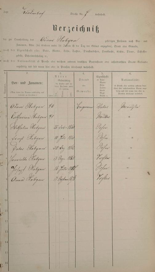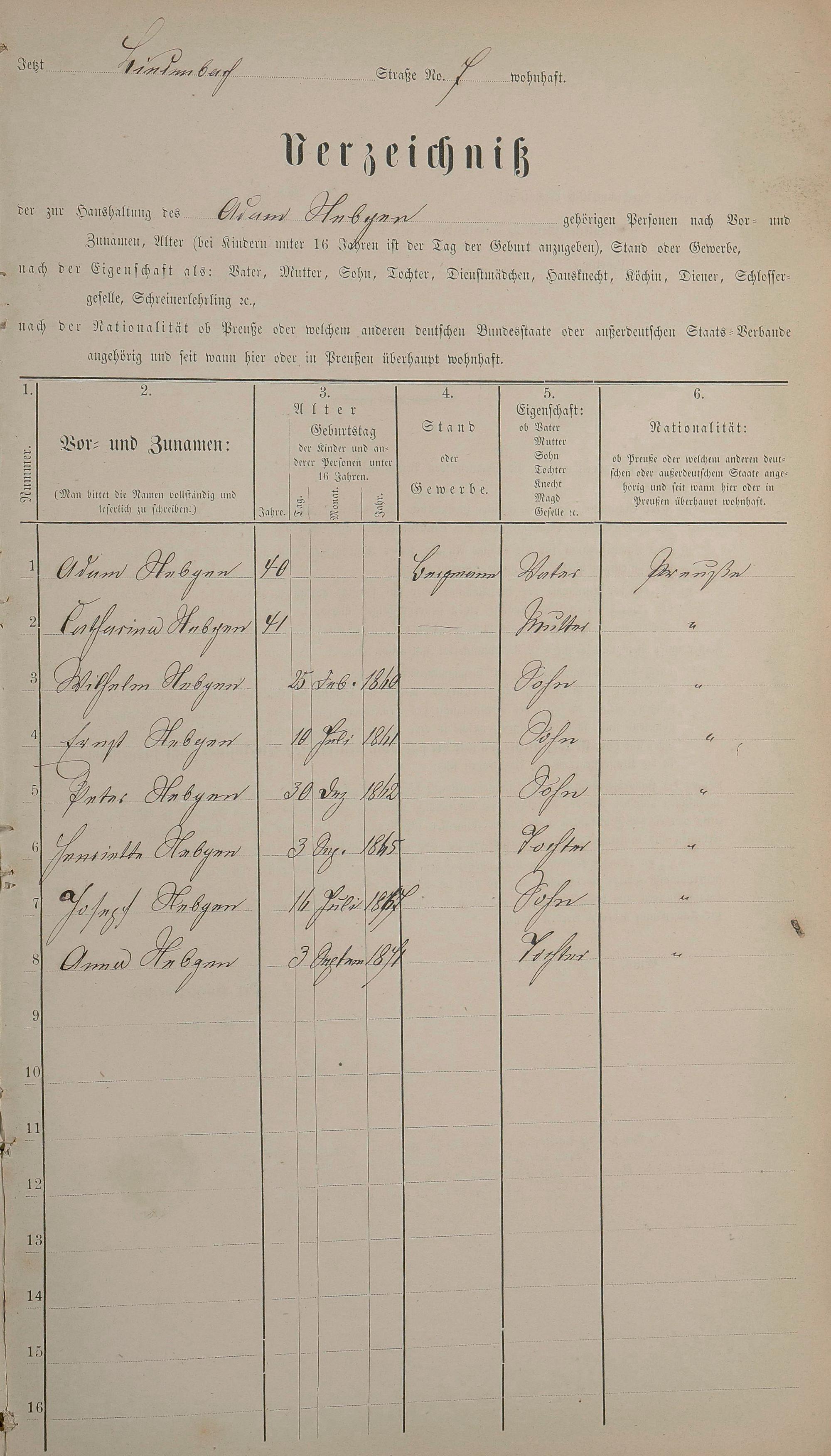 Personenstandsaufnahme zur Klassensteuerrolle für 1873
