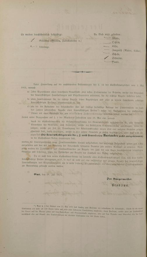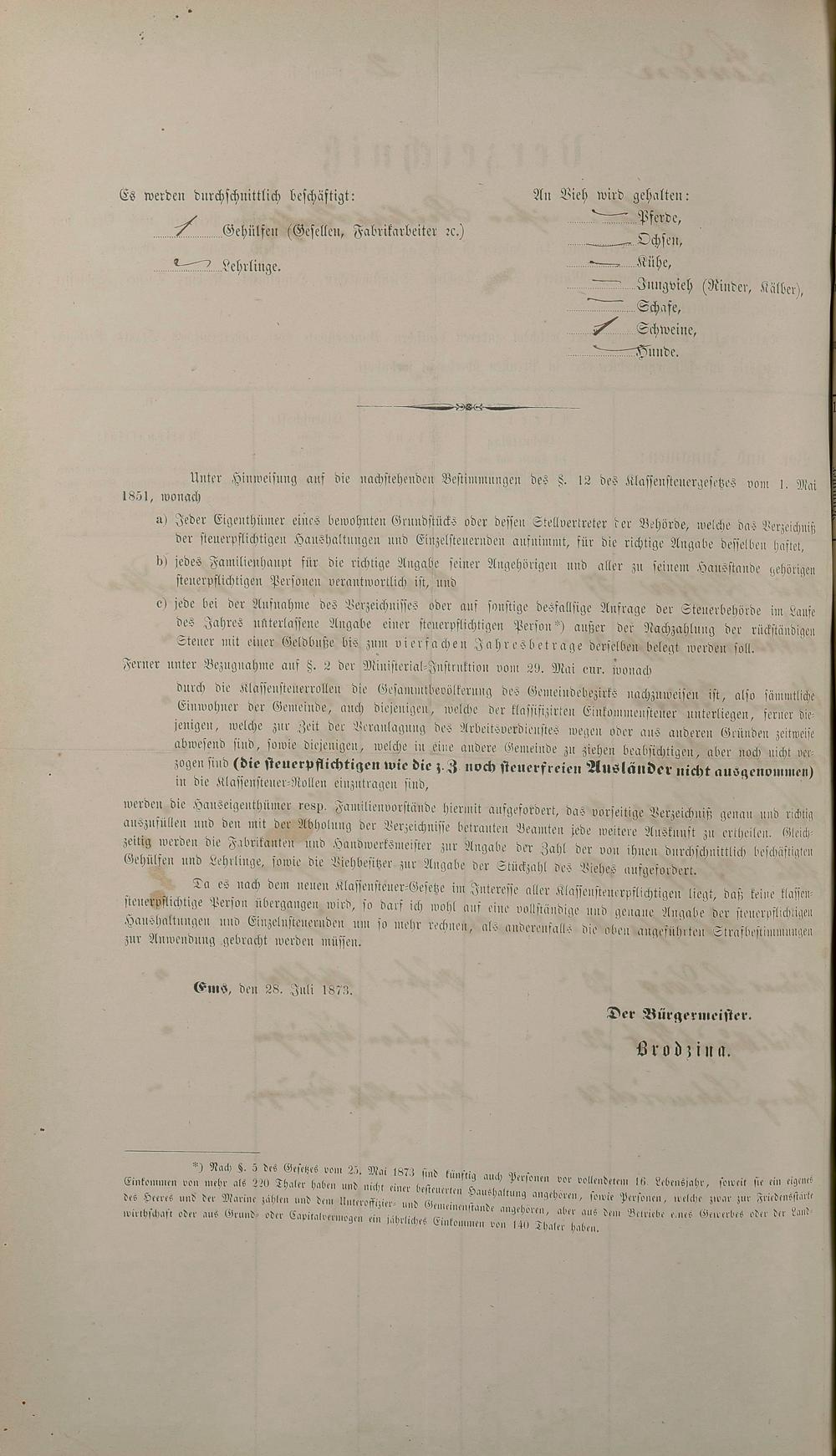 Personenstandsaufnahme zur Klassensteuerrolle für 1873